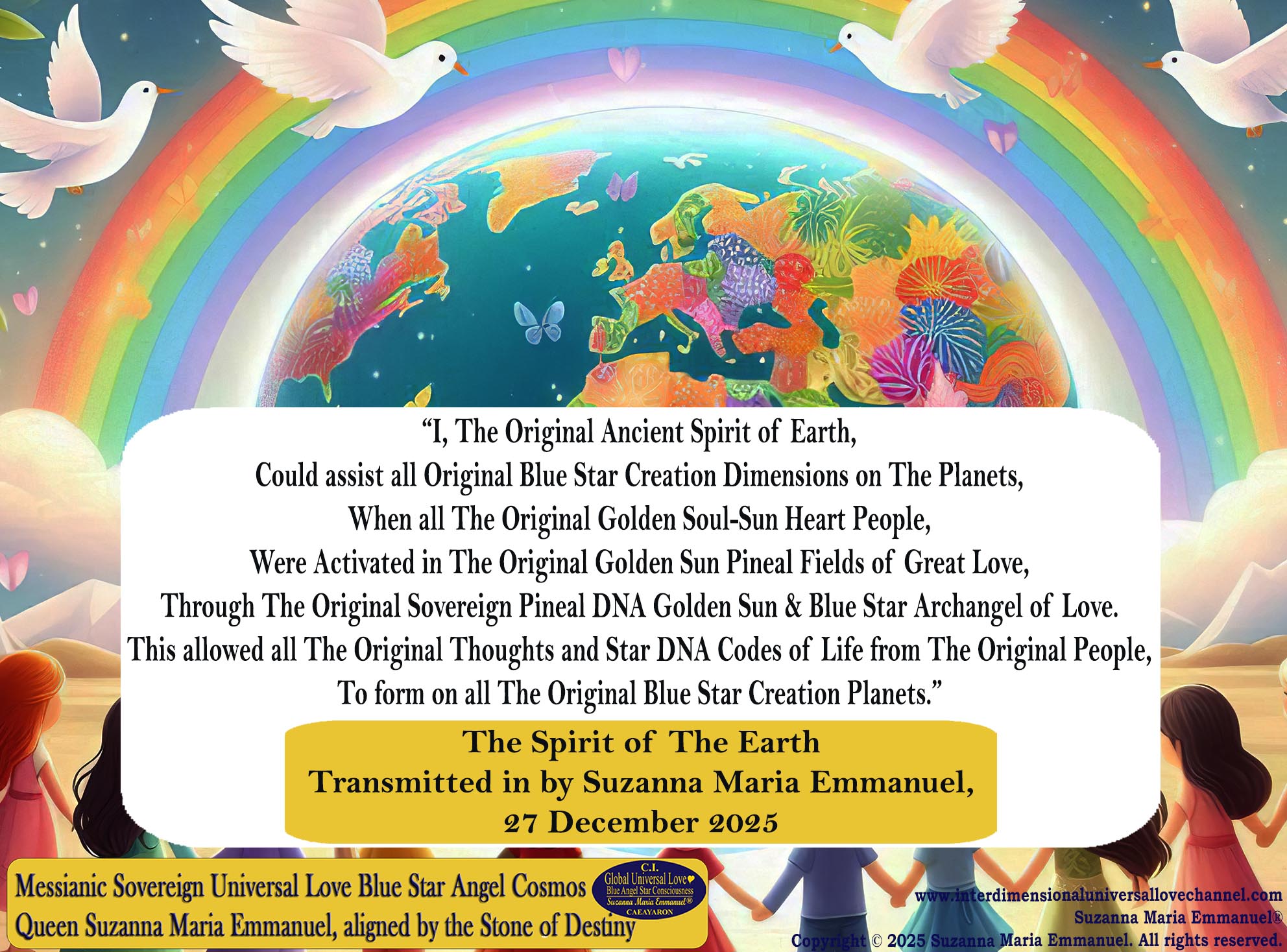 Universal Love Transmission by The Original Sovereign Golden Sun & Blue Star Angel Heart Consciousness Channel, Suzanna Maria Emmanuel, 27 December 2025.
