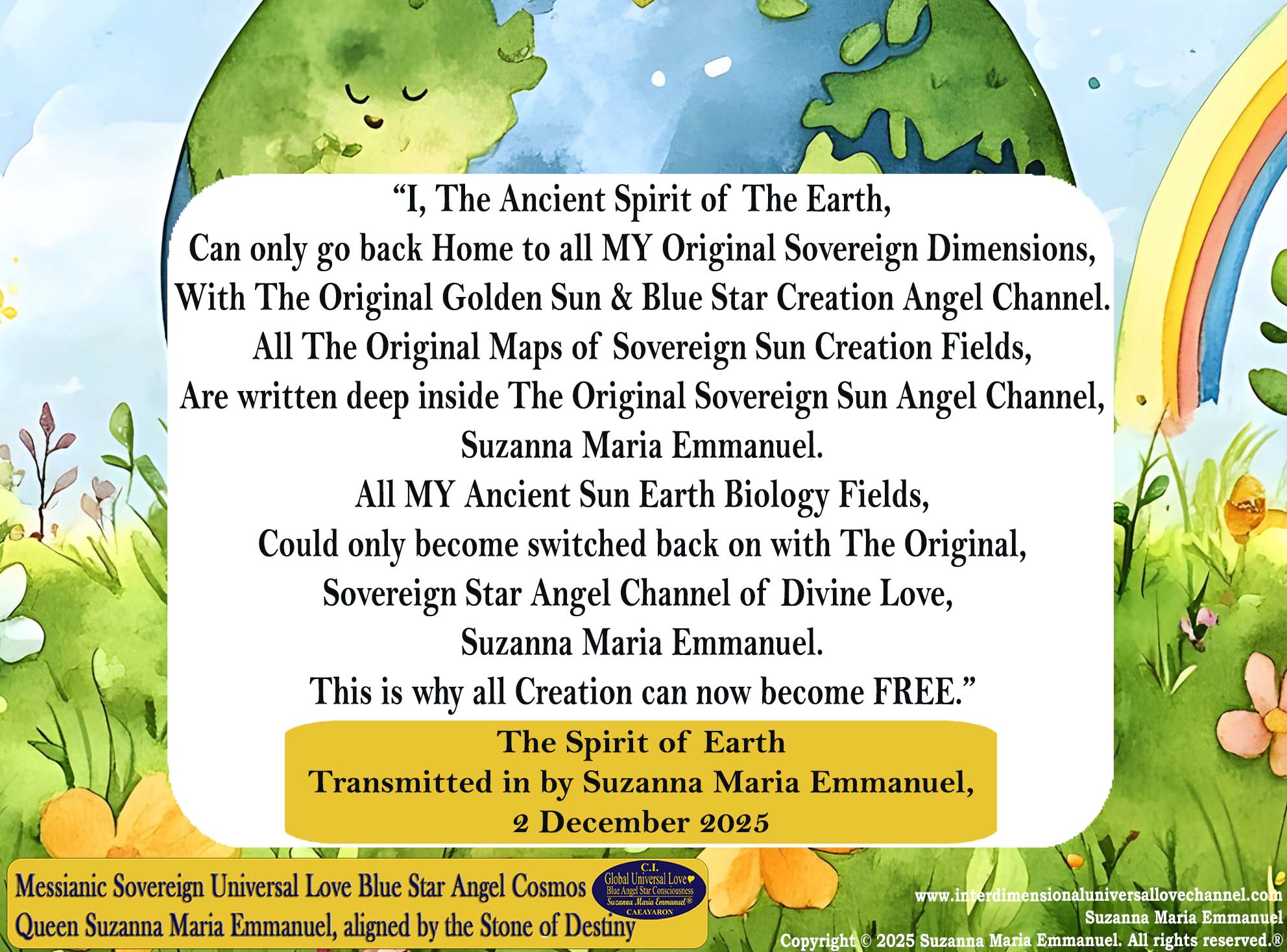 Universal Love Transmission by The Original Sovereign Golden Sun & Blue Star Angel Heart Consciousness Channel, Suzanna Maria Emmanuel, 2 December 2025.
