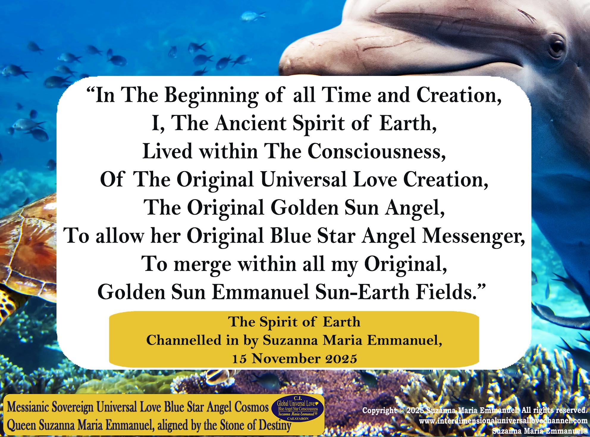 Universal Love Transmission by The Original Sovereign Golden Sun & Blue Star Angel Heart Consciousness Channel, Suzanna Maria Emmanuel, 15 November 2025.