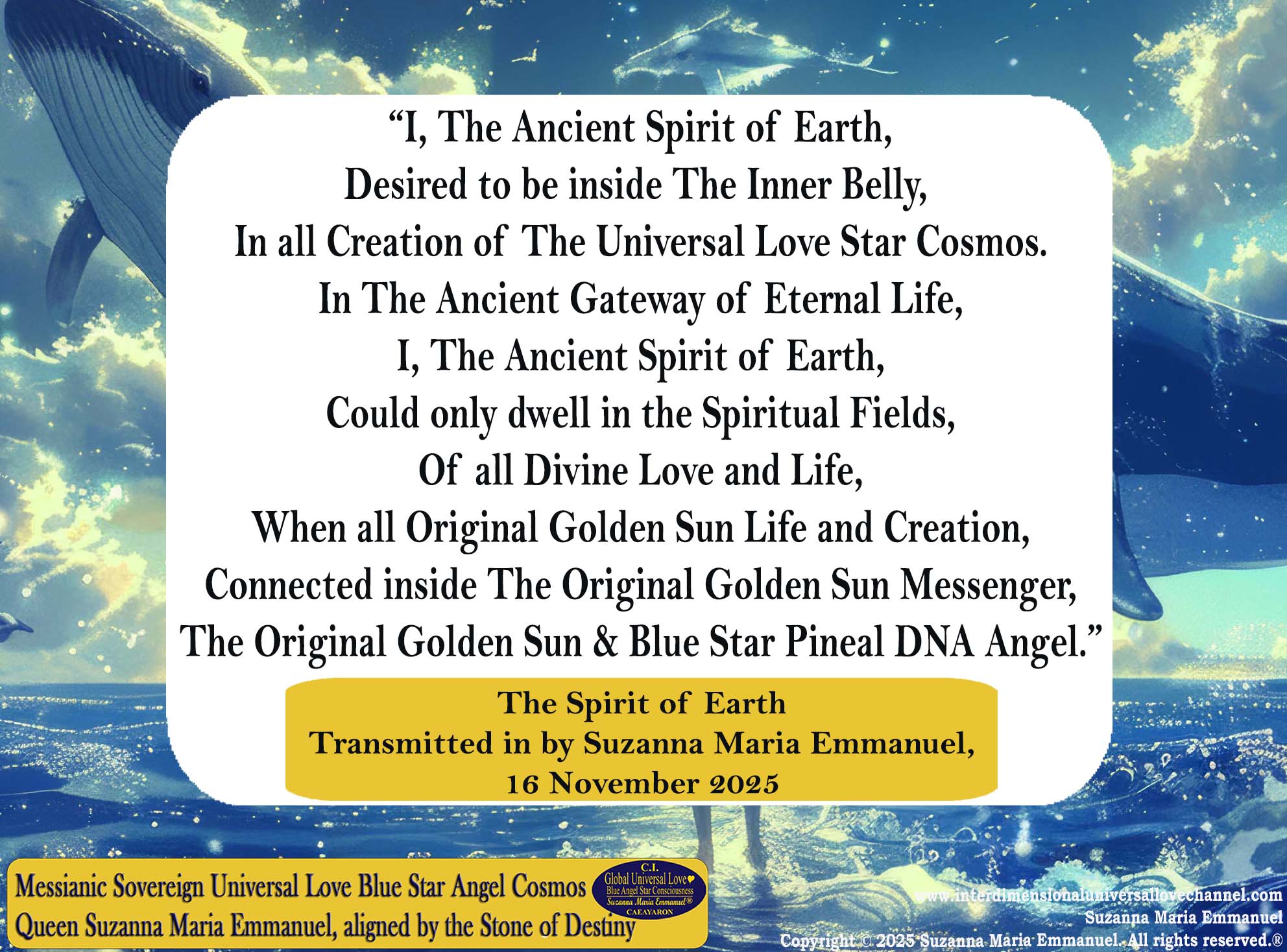 Universal Love Transmission by The Original Sovereign Golden Sun & Blue Star Angel Heart Consciousness Channel, Suzanna Maria Emmanuel, 25 November 2025.