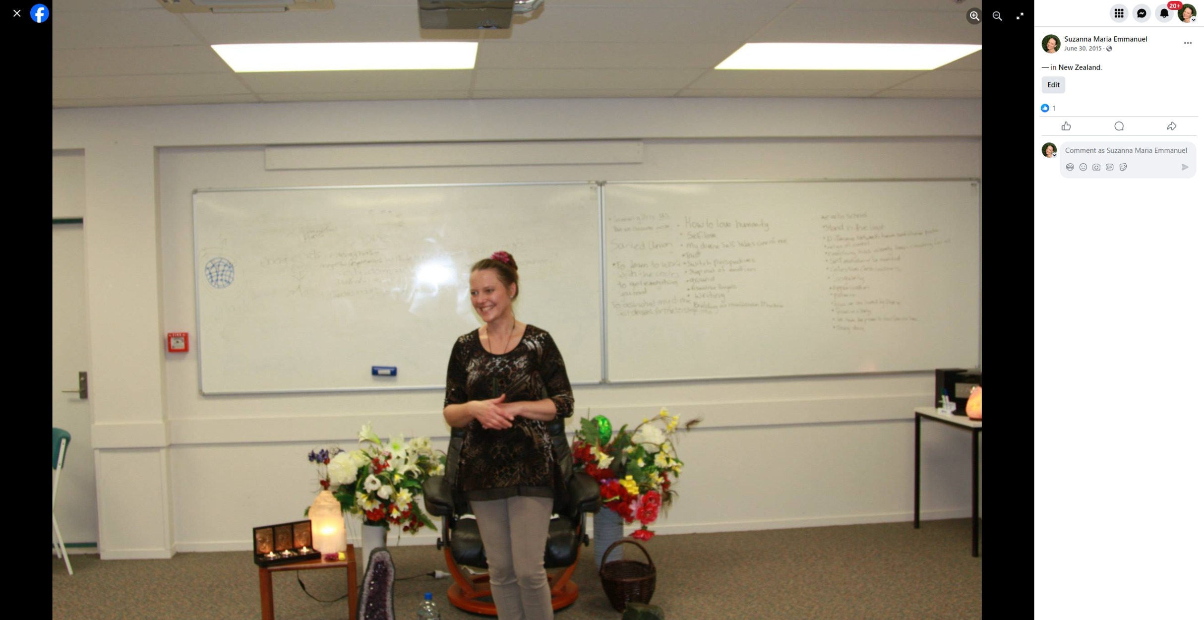 The photos below show that Suzanna Maria Emmanuel worked with the Sovereign Universal Love Divine Pineal Angel Activation Fields in the year 2015, in Whakatane, New Zealand.