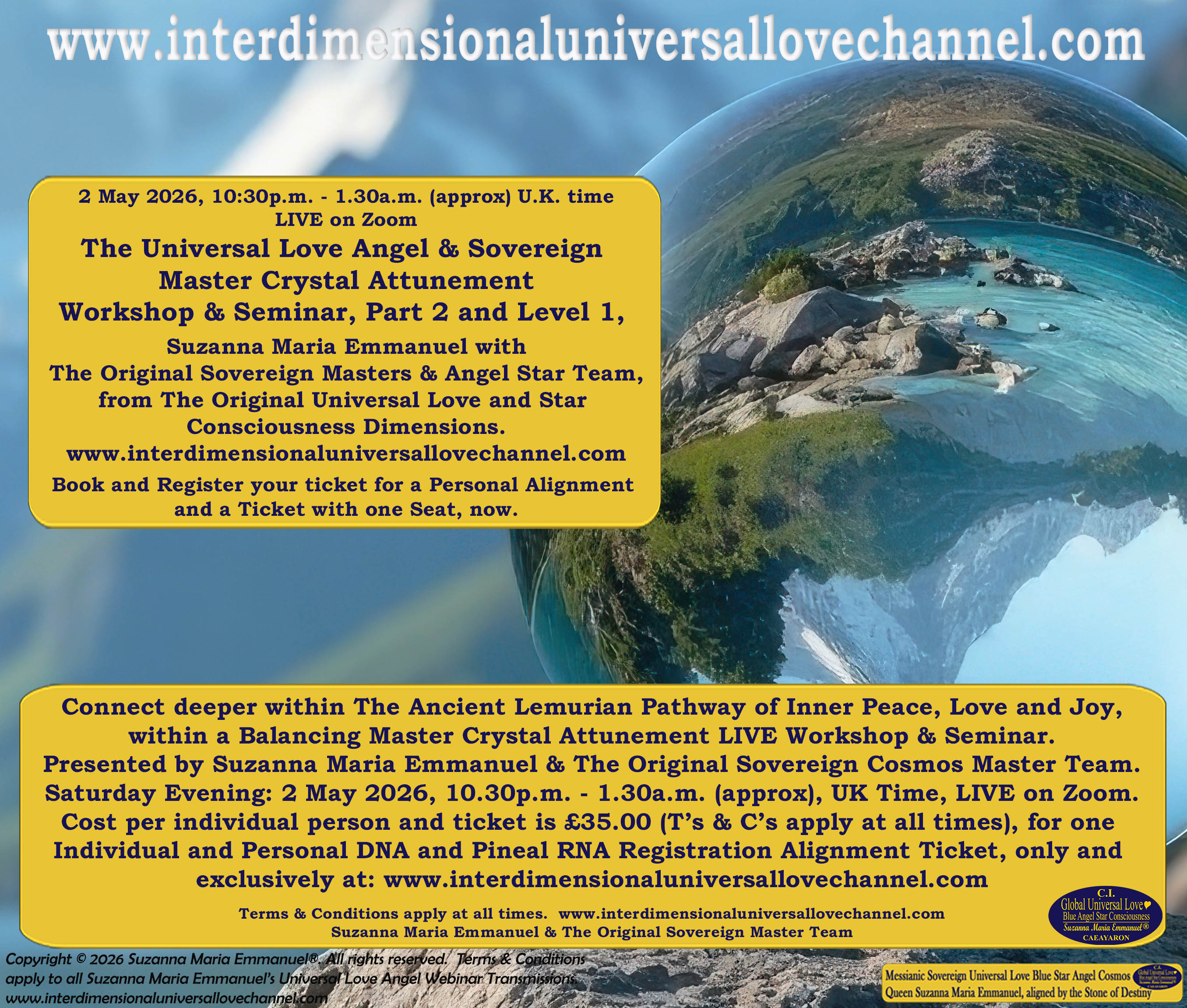All Sovereign Lord Emmanuel's and Caeayaron's Sovereign Magnetic Master's Universal Love Transmissions are copyright protected and trademarked by Suzanna Maria Emmanuel Ltd. Copyright © 2026 Suzanna Maria Emmanuel®. All rights reserved.