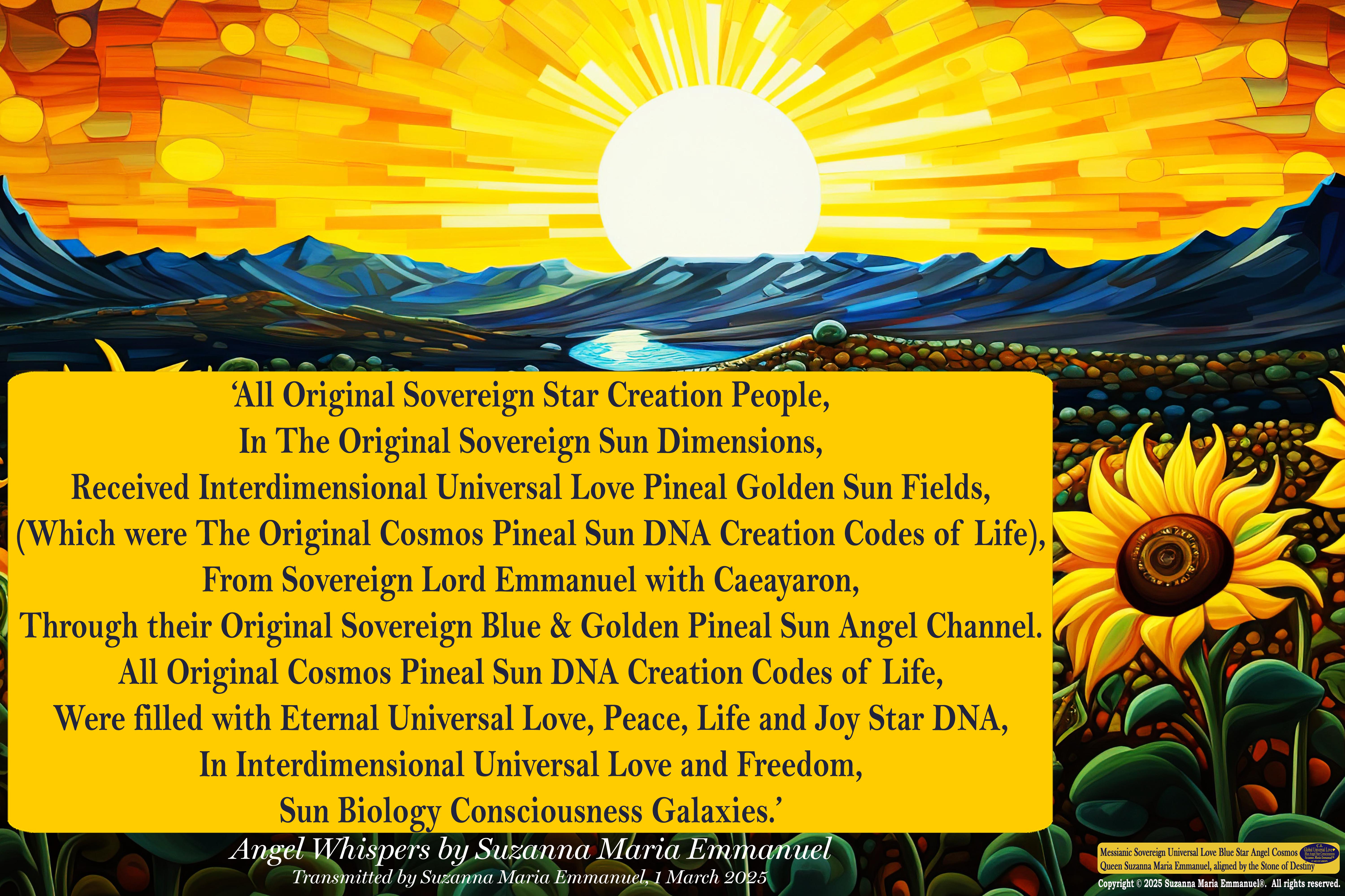 1 March 2025 - Universal Love Angel Whisper 85: Suzanna Maria Emmanuel, The Original Sovereign Channel, is the Original Coder of Life from The Eternal Star Realms.