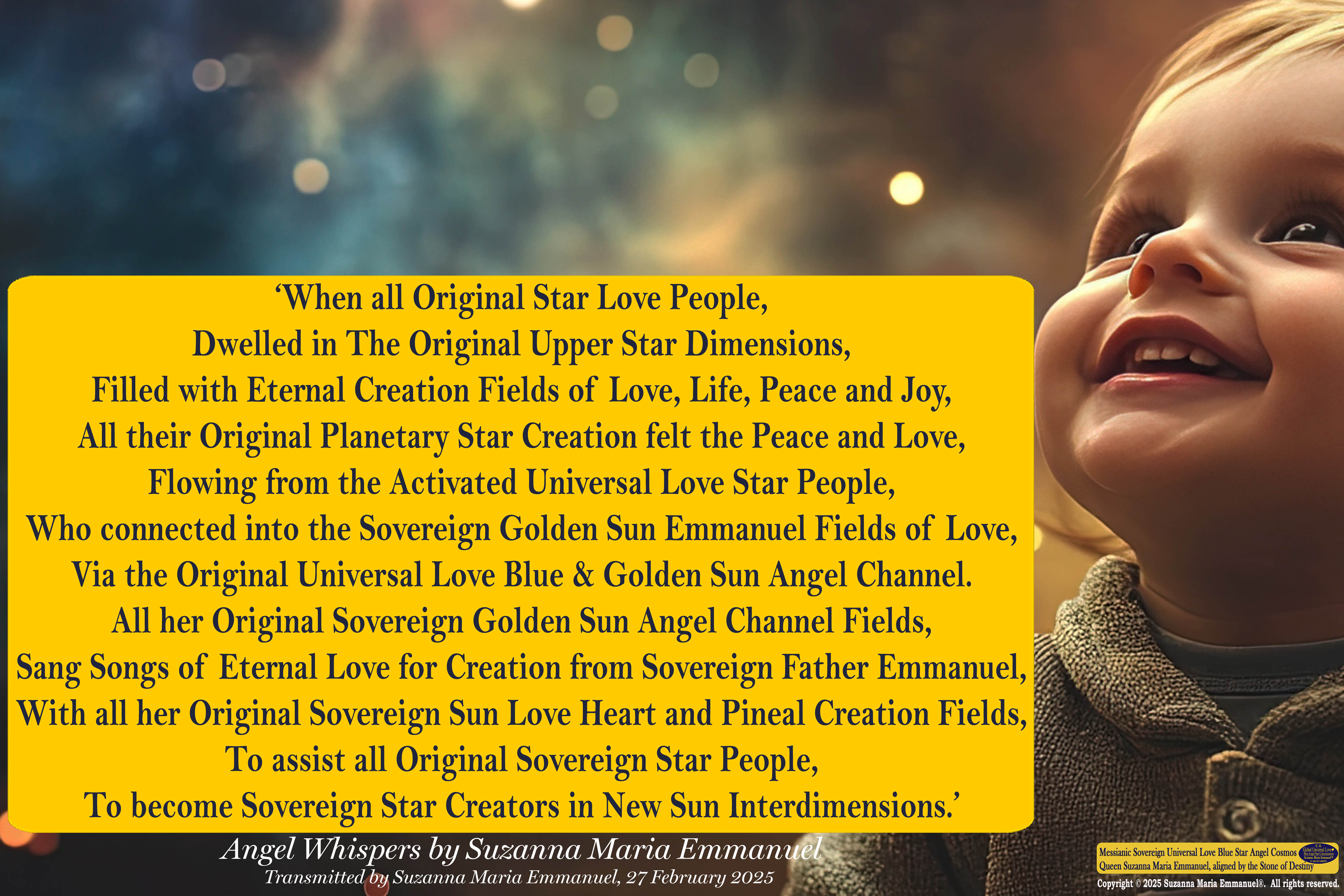27 February 2025 - Universal Love Angel Whisper 84: Suzanna Maria Emmanuel, The Original Sovereign Channel, is the Original Coder of Life from The Eternal Star Realms.