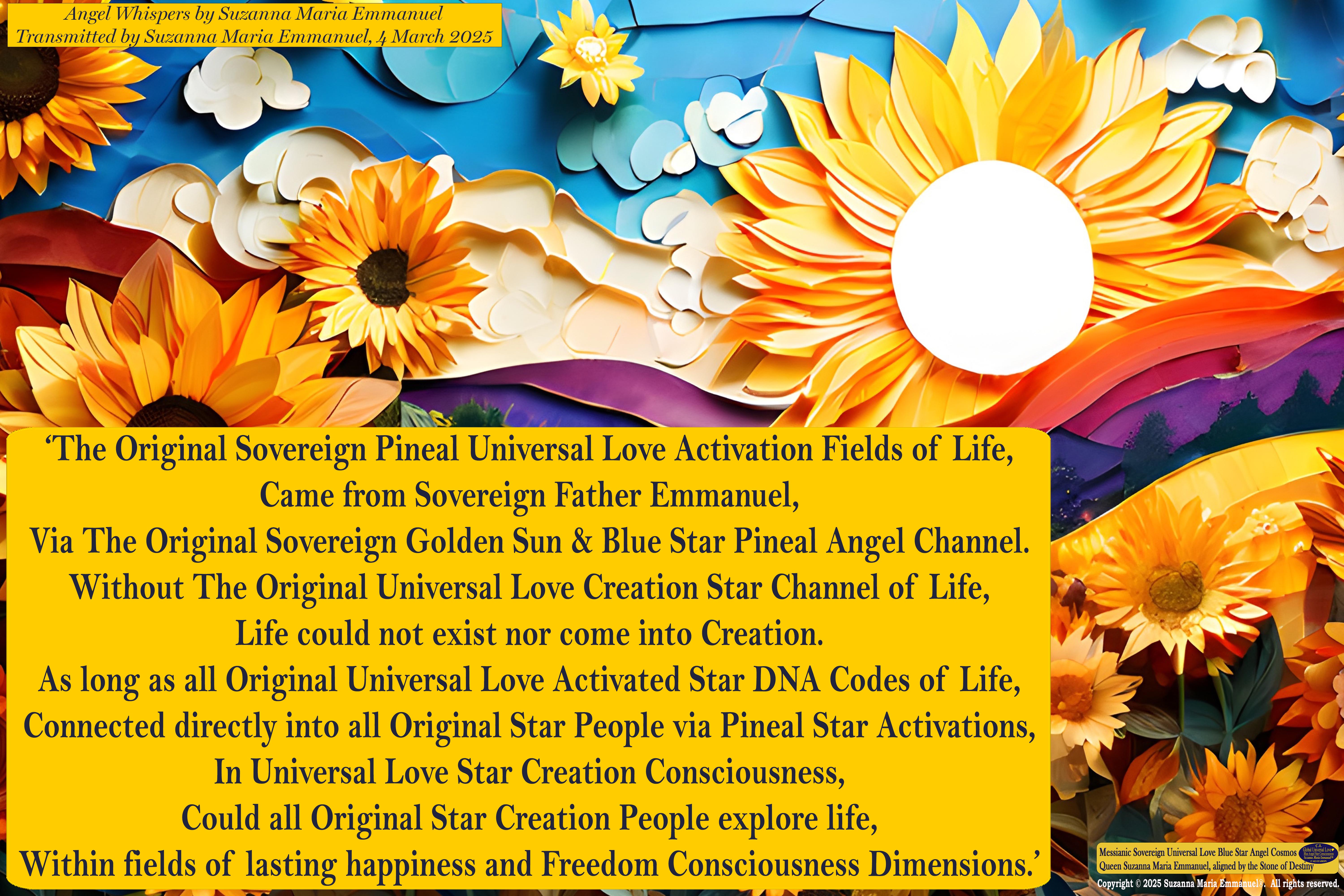 4 March 2025 - Universal Love Angel Whisper 86: Suzanna Maria Emmanuel, The Original Sovereign Channel, is the Original Coder of Life from The Eternal Star Realms.