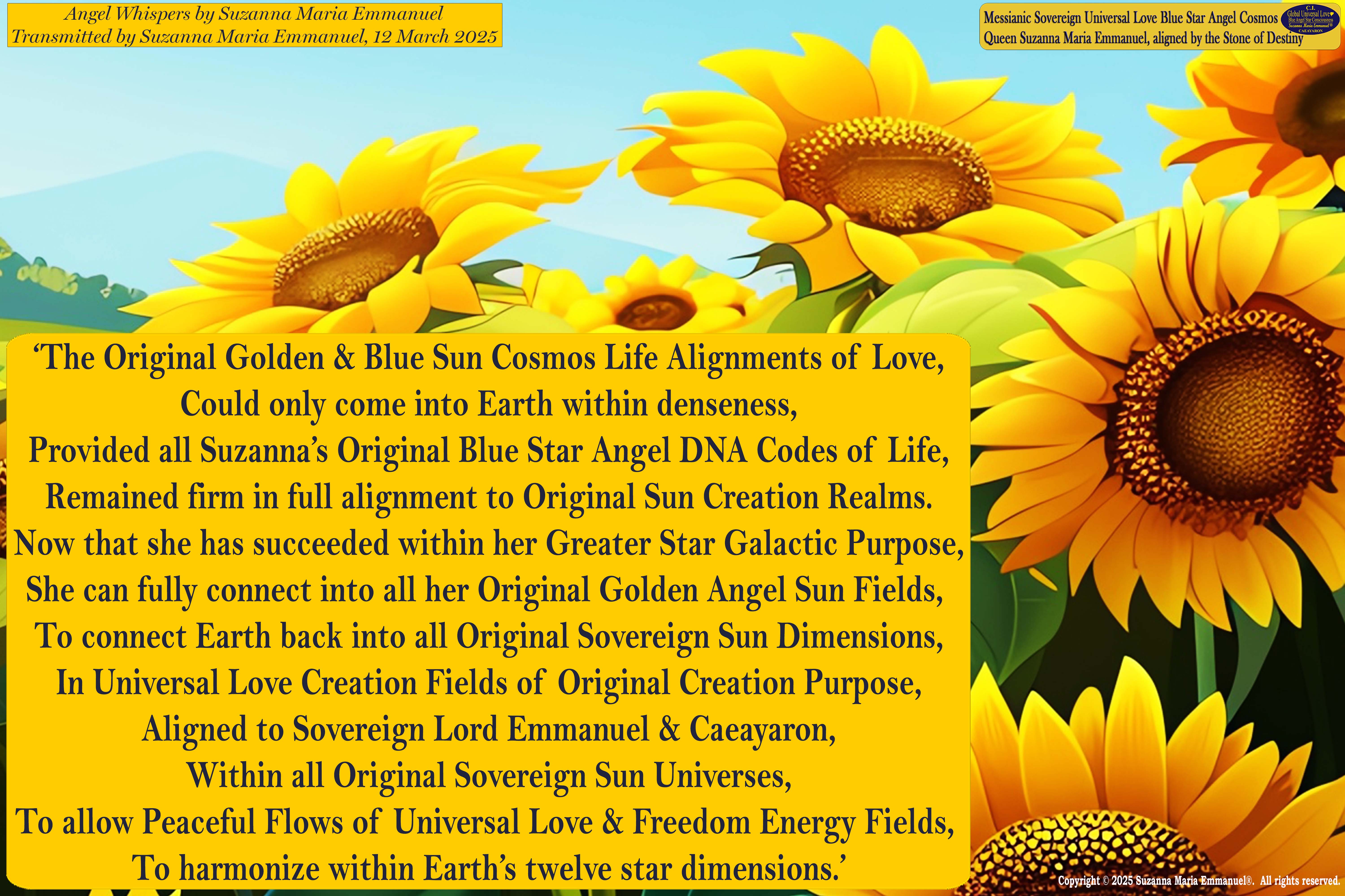12 March 2025 - Universal Love Angel Whisper 88: Suzanna Maria Emmanuel, The Original Sovereign Channel, is the Original Coder of Life from The Eternal Star Realms.