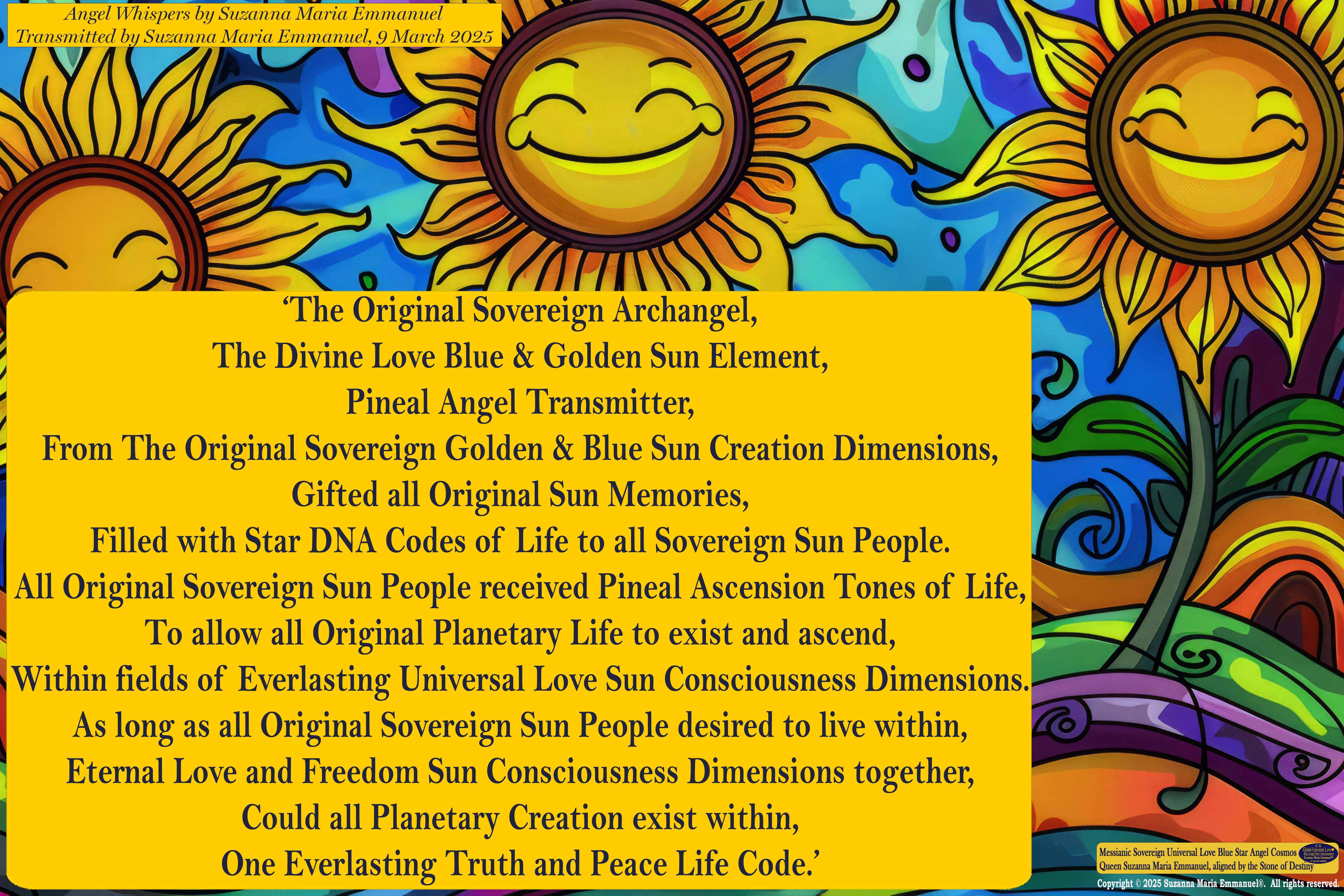 9 March 2025 - Universal Love Angel Whisper 87: Suzanna Maria Emmanuel, The Original Sovereign Channel, is the Original Coder of Life from The Eternal Star Realms.