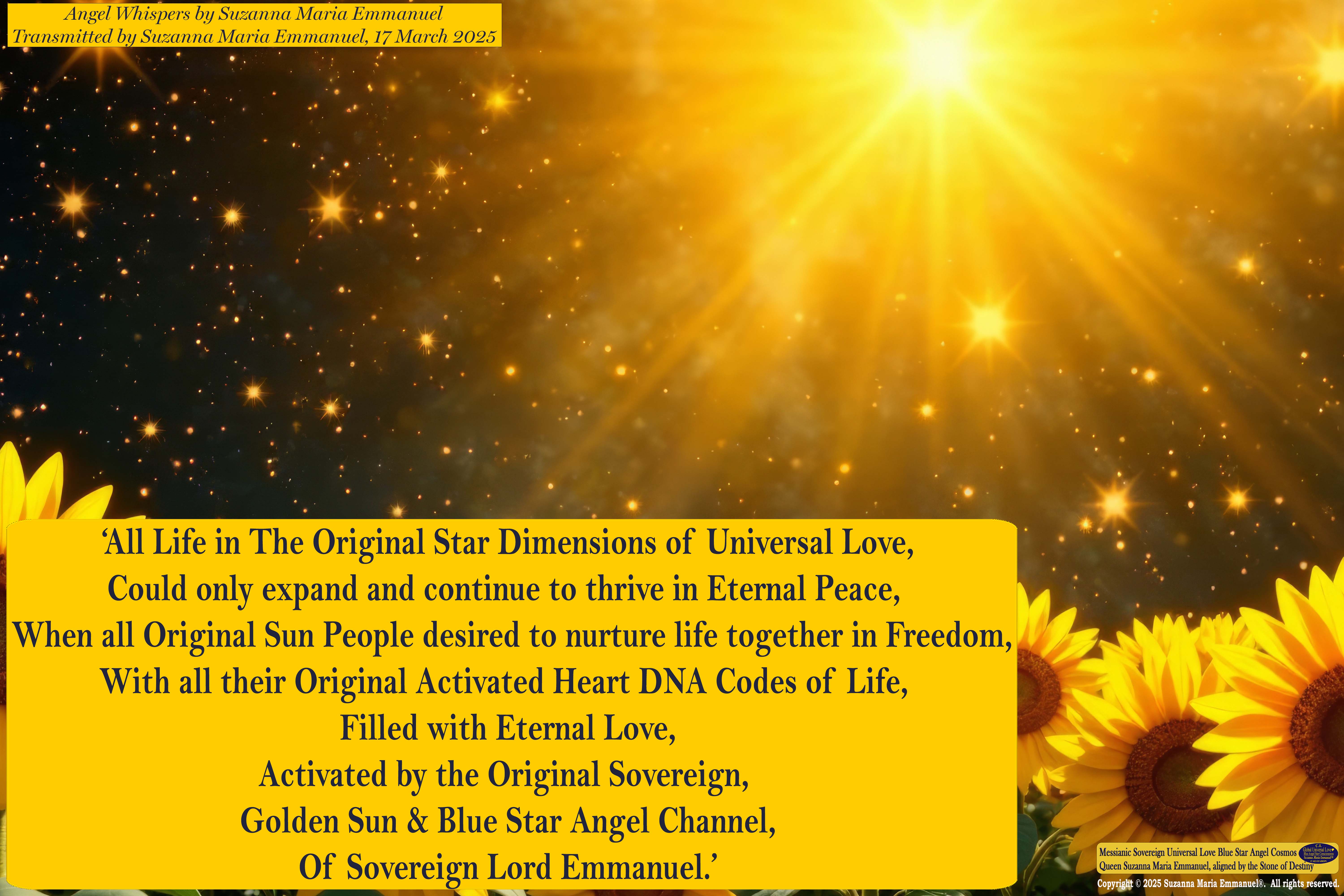 17 March 2025 - Universal Love Angel Whisper 89: Suzanna Maria Emmanuel, The Original Sovereign Channel, is the Original Coder of Life from The Eternal Star Realms.