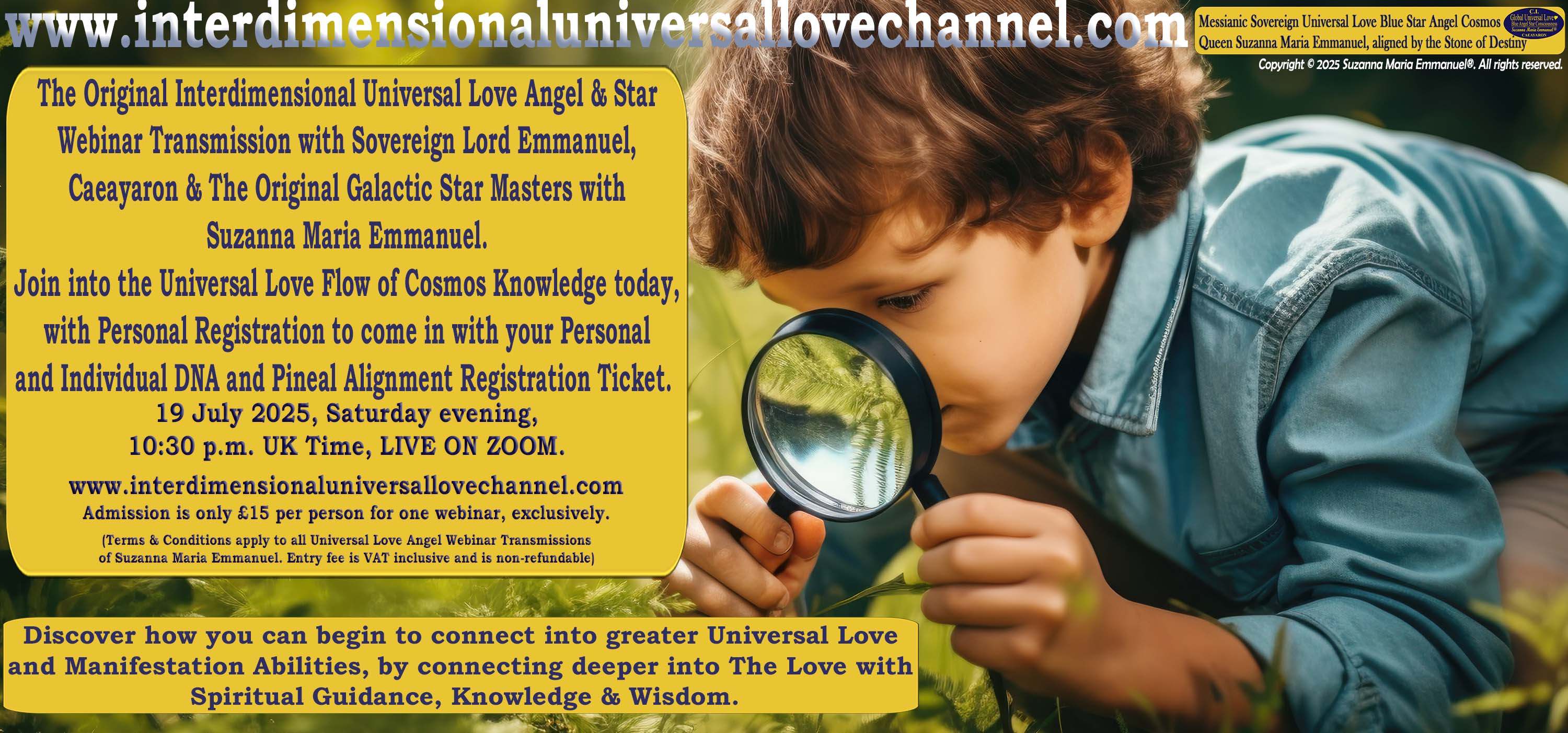 Suzanna Maria Emmanuel/Interdimensional Universal Love Angel & Star Planetary Expansion Webinar Transmission - Saturday, 19 July 2025, 10:30 p.m. UK Time, LIVE on Zoom