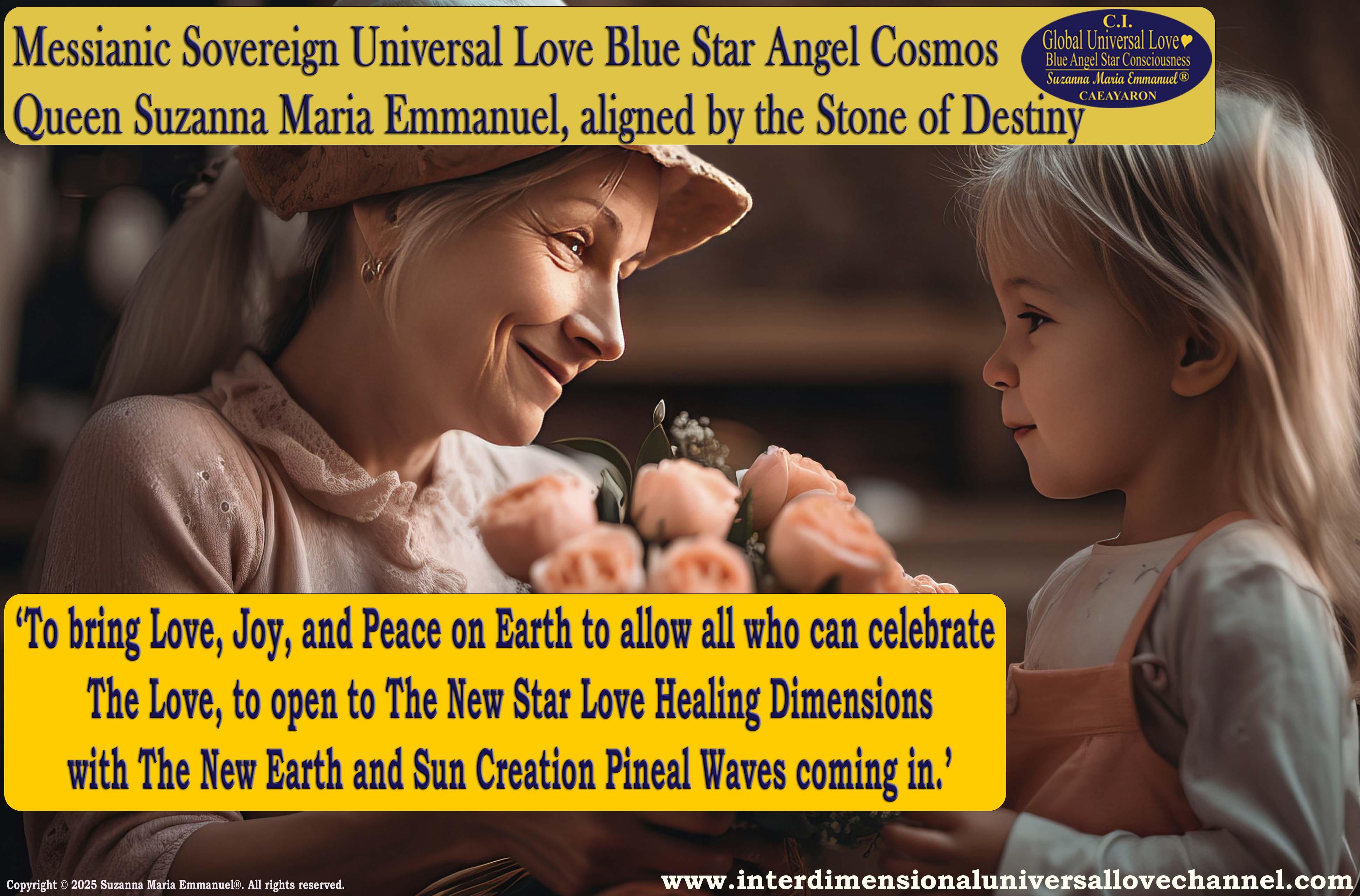 Suzanna Maria Emmanuel is The Original Designated Sovereign Master & Star Universal Love Angel Transmitter and Messenger. She is The Original Earth Energy Healing Flow Balancer with her Original Sovereign Golden Sun Master Emmanuel Pineal Flow of Energy, to allow the flows of Caeayaron and Sovereign Lord Emmanuel to support and assist Humanity and all life on Earth, today, potentially.