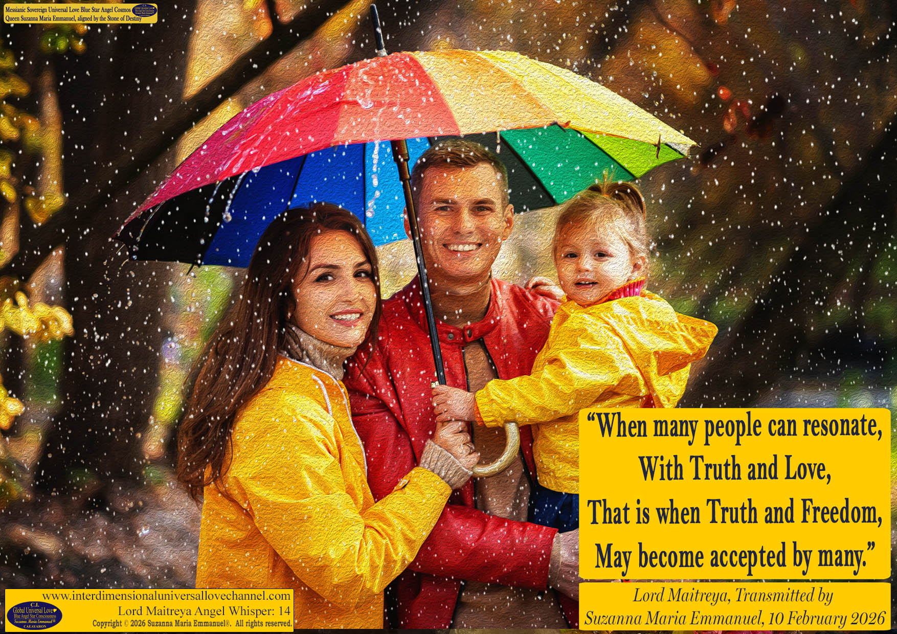 Copyright © 2026 Suzanna Maria Emmanuel®. All rights reserved. Welcome to The Universal Love Master Healing Fields from Sovereign Masters for Spiritual Healings, Guidance, Spiritual Protection, Manifestation, Spiritual Encouragement and Personal Support. Terms and Conditions apply at all times.