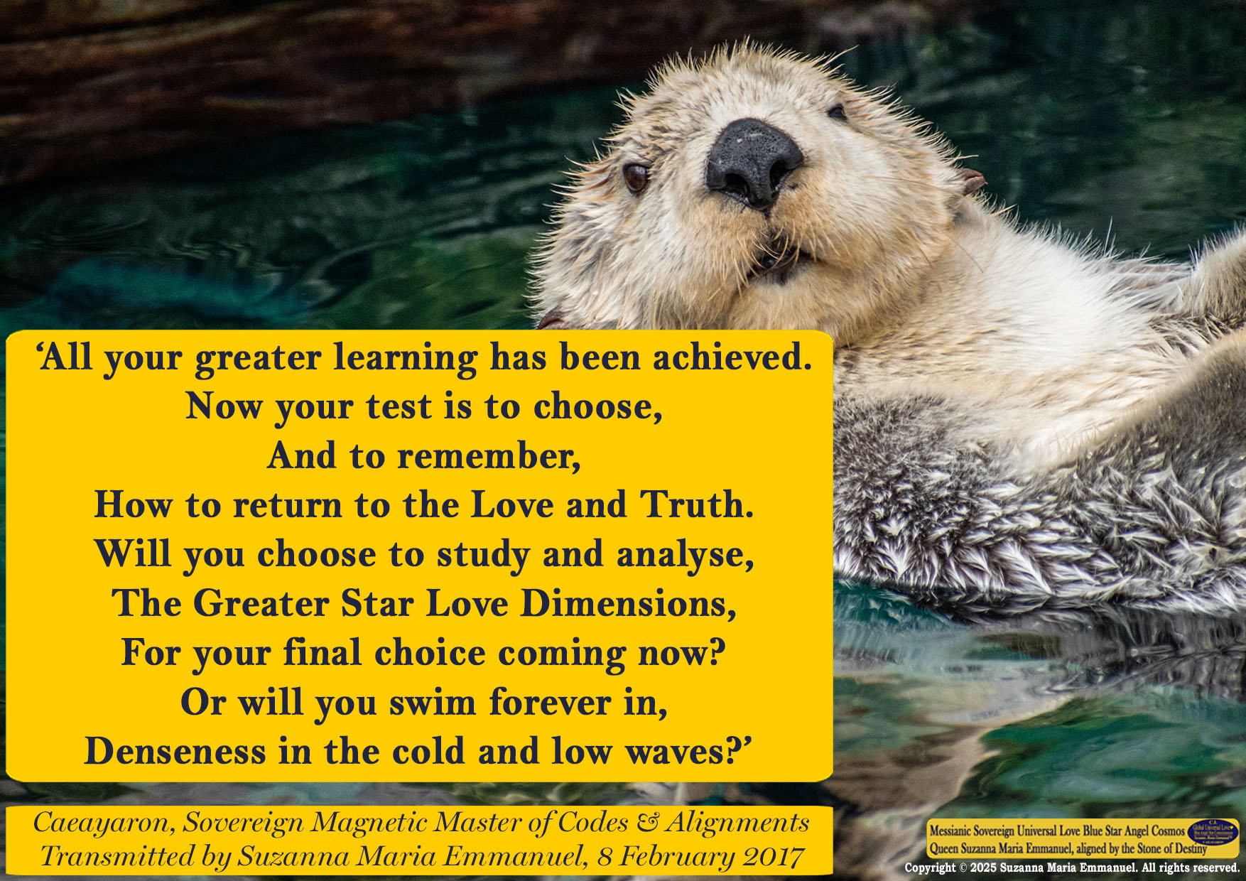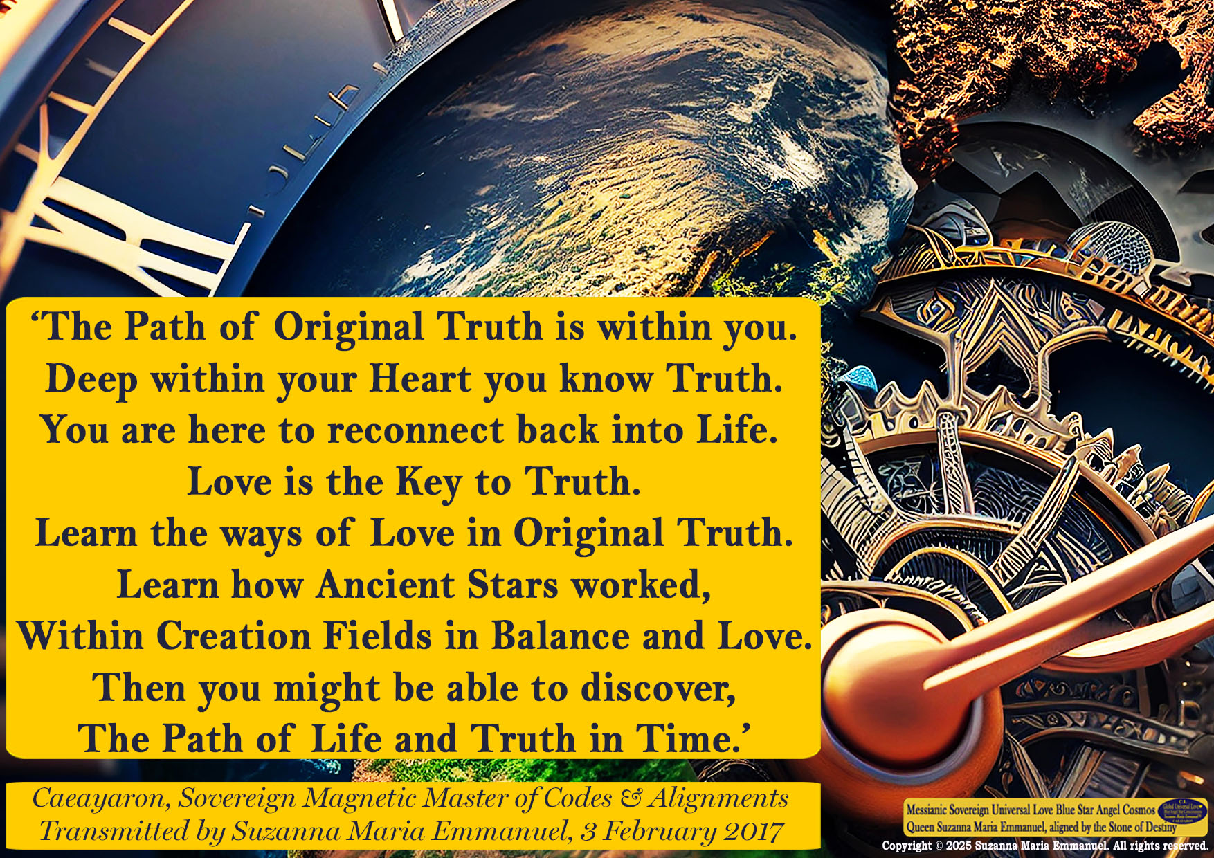 All Sovereign Cosmos Intellect is Transmitted by Suzanna Maria Emmanuel and is copyright protected. Copyright © 2025 Suzanna Maria Emmanuel®. All rights reserved.