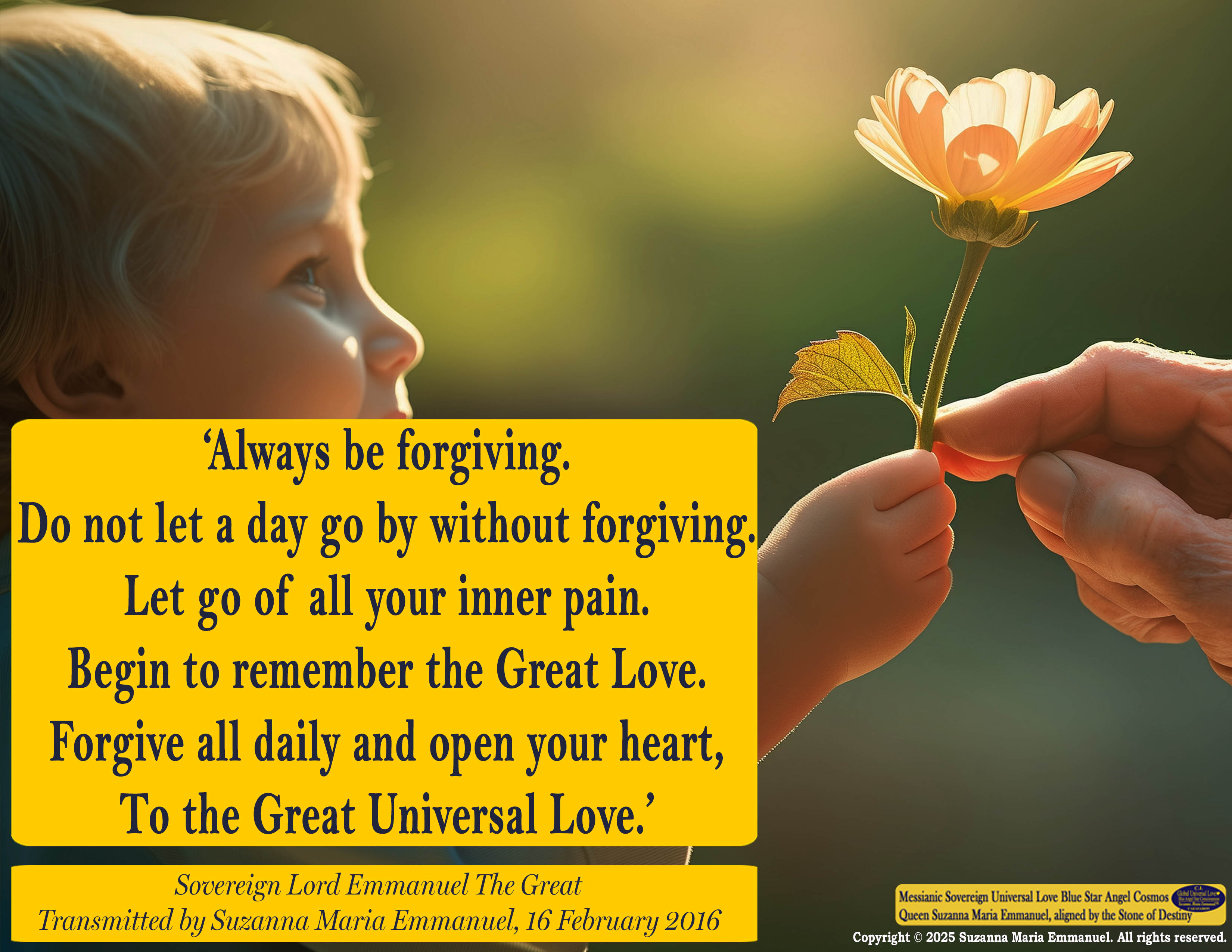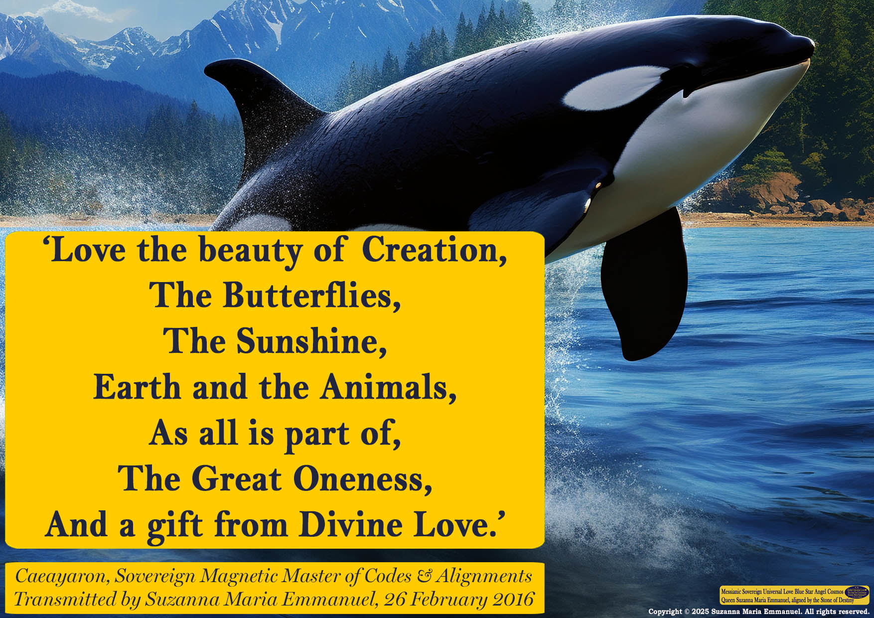 Suzanna Maria Emmanuel is Designated by Sovereign Father Emmanuel & Caeayaron, Cosmos Star DNA Creation Intelligence, as The Original Sovereign Universal Love Angel Channel to open up the Original Messianic Gateway of Eternal Love.