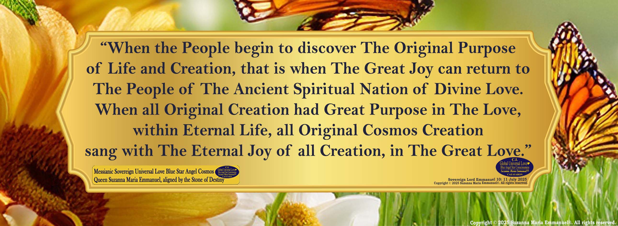 Sovereign Lord Emmanuel, Transmitted by Suzanna Maria Emmanuel, 11 July 2025.