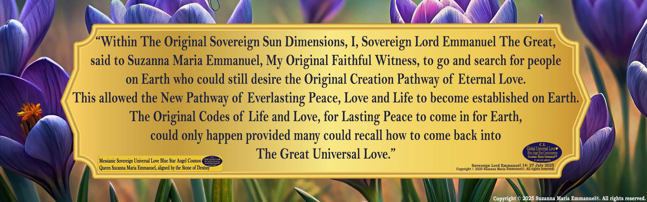 Sovereign Lord Emmanuel, Transmitted by Suzanna Maria Emmanuel, 27 July 2025.