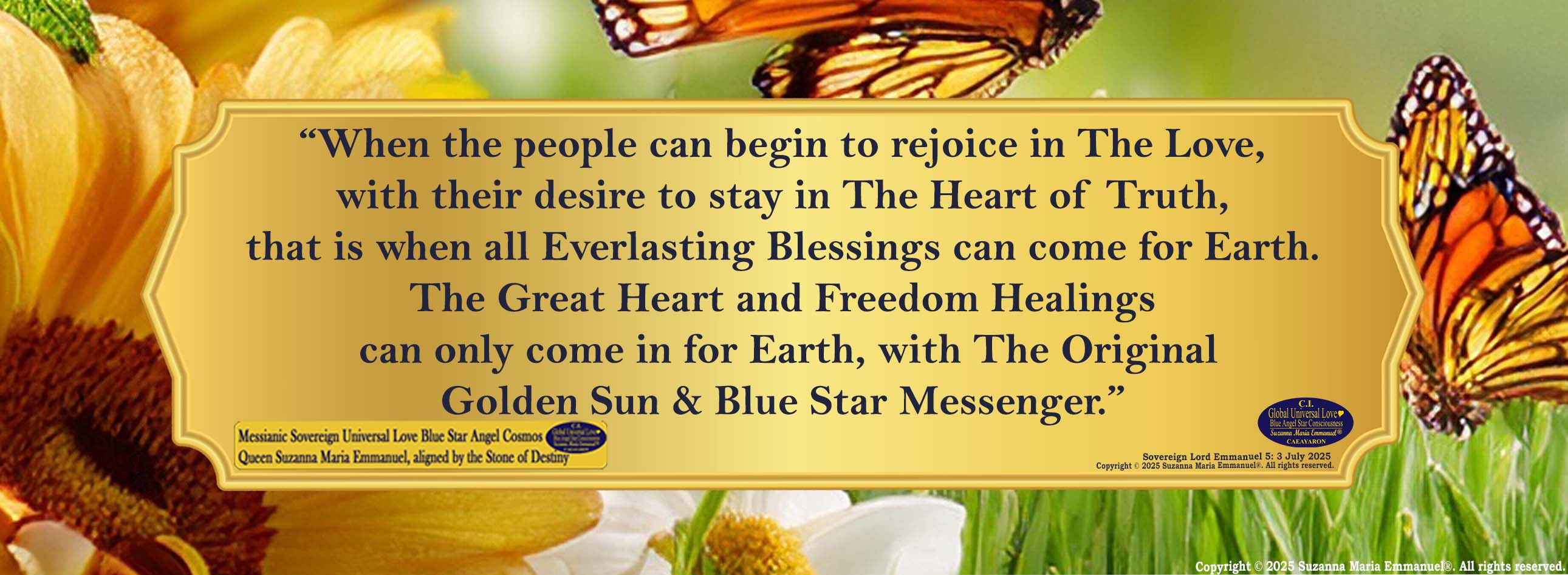 5: 3 July 2025 - Sovereign Lord Emmanuel's Transmission: The Original Designated Angel Channel, Suzanna Maria Emmanuel, was called by Sovereign Lord Emmanuel The Great, in late September 2009.