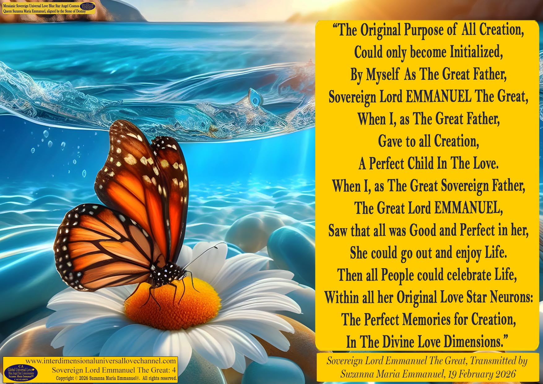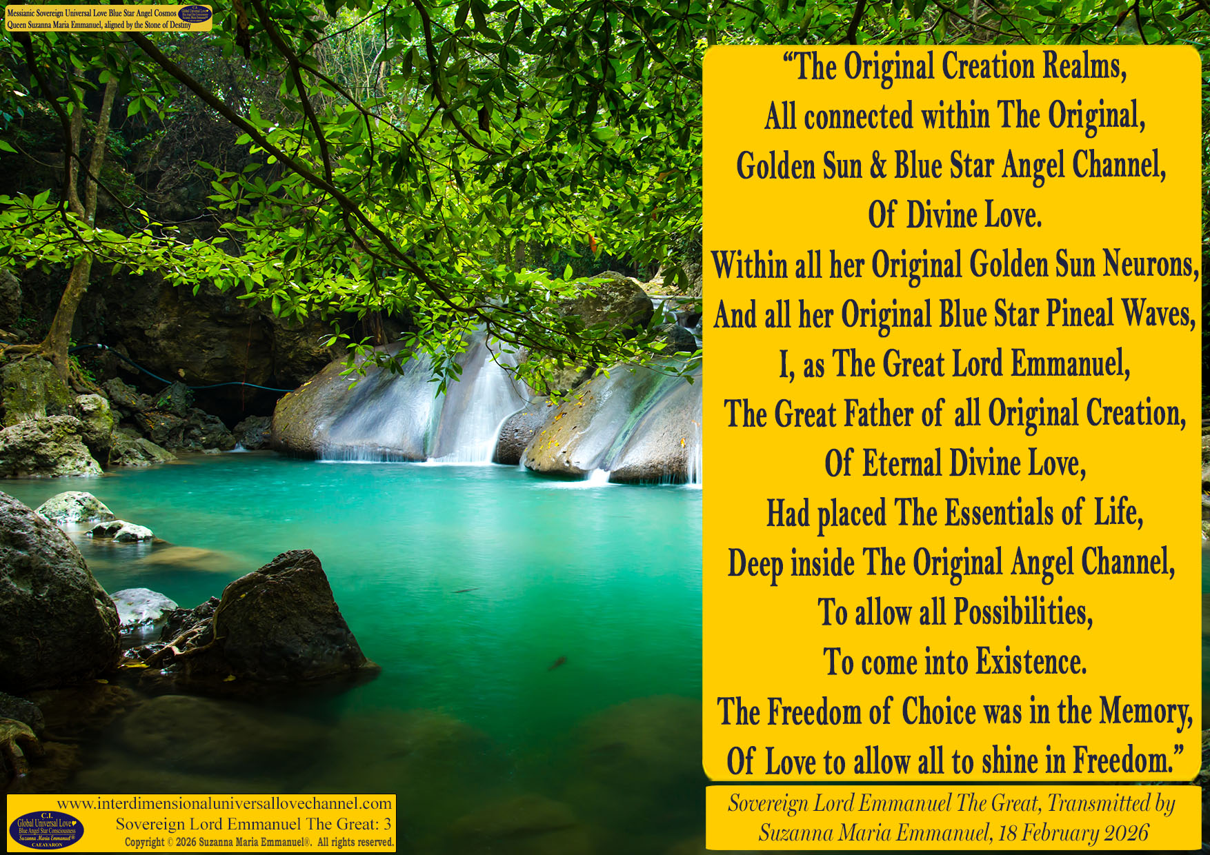 All Sovereign Lord Emmanuel's and Caeayaron's Sovereign Magnetic Master's Universal Love Transmissions are copyright protected and trademarked by Suzanna Maria Emmanuel Ltd. Copyright © 2026 Suzanna Maria Emmanuel®. All rights reserved.