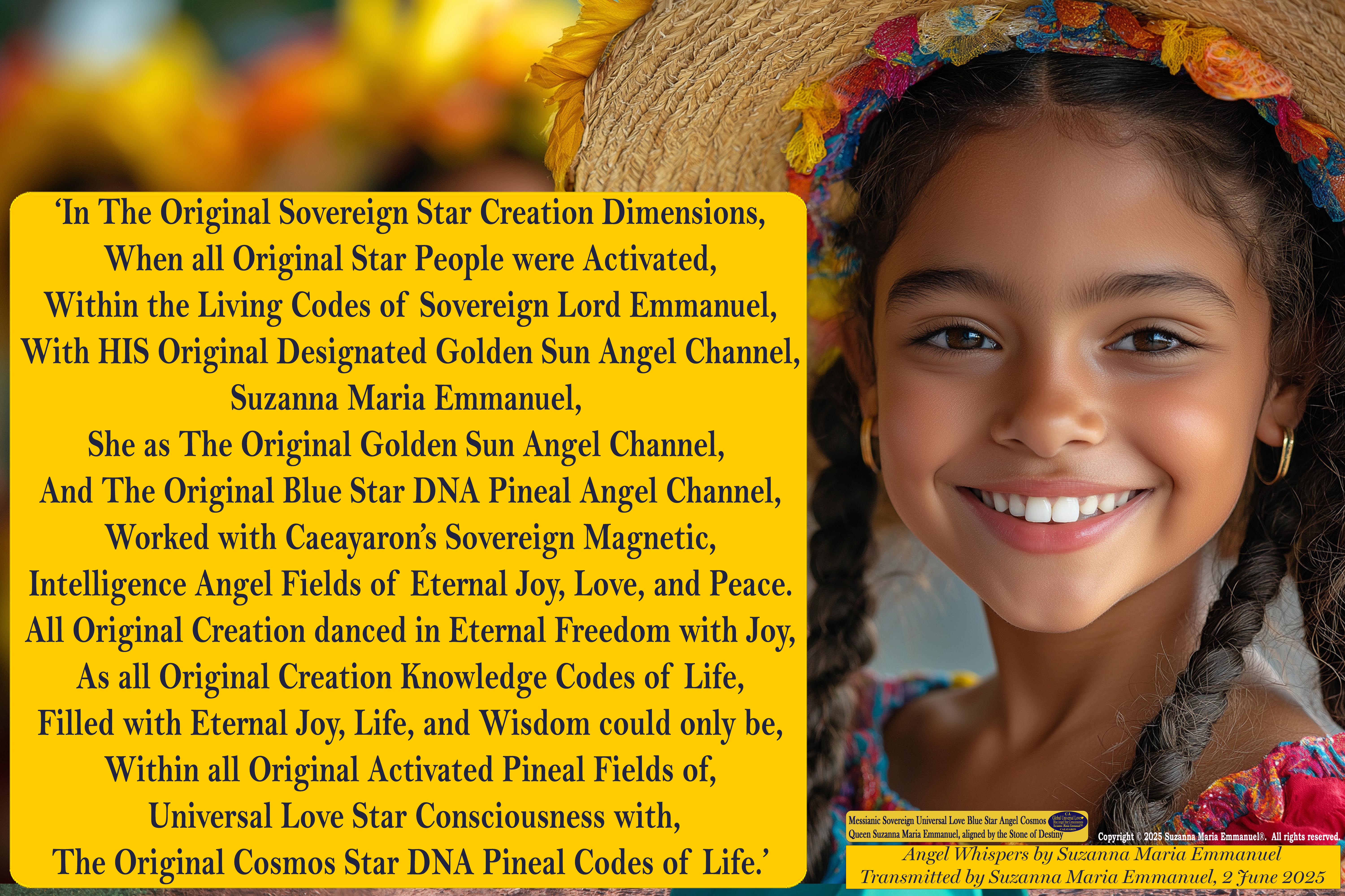 2 June 2025 - Universal Love Angel Whisper 97: Suzanna Maria Emmanuel, The Original Sovereign Channel, is the Original Coder of Life from The Eternal Star Realms.