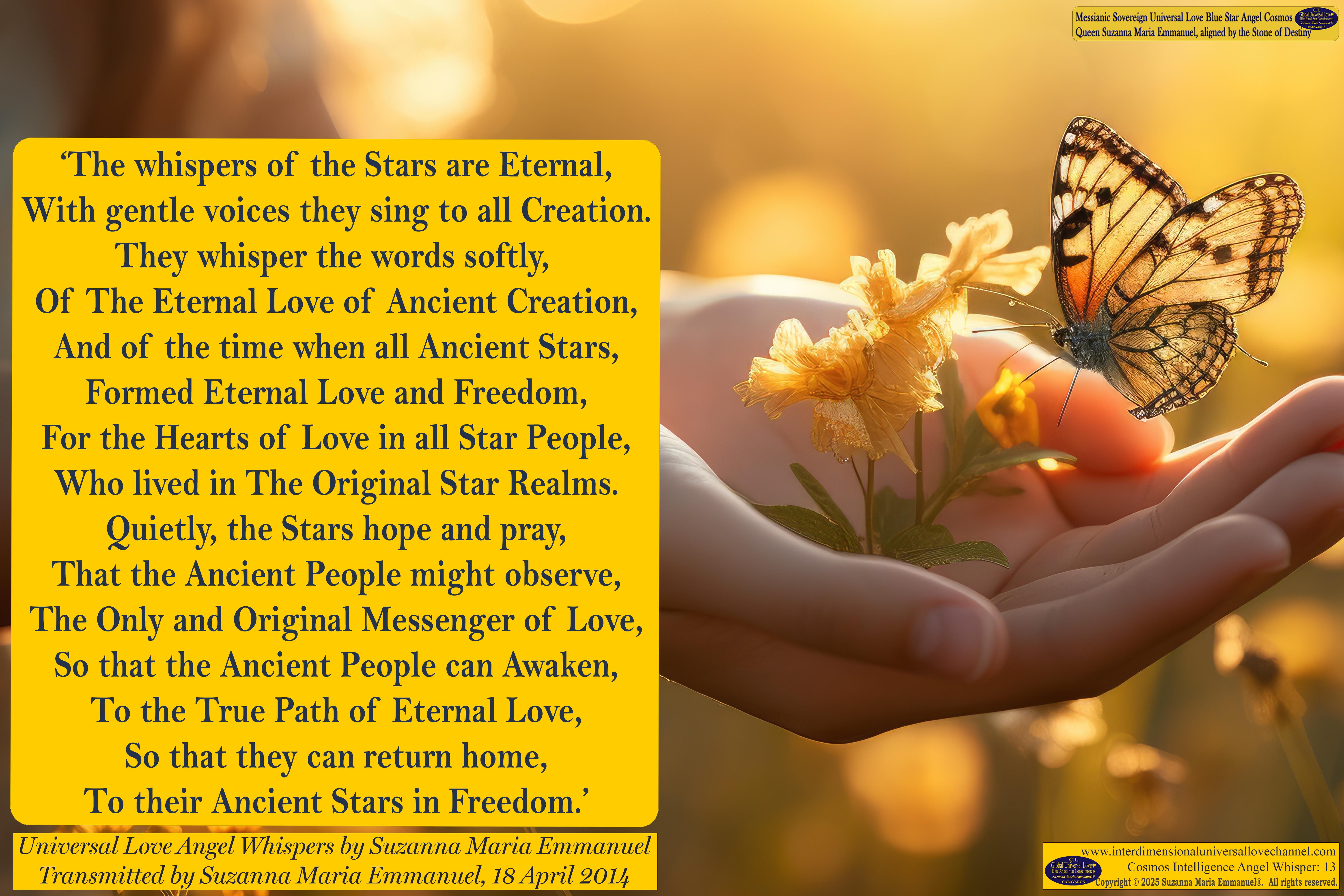 18 April 2014 - Universal Love Angel Whisper 13: Suzanna Maria Emmanuel, The Original Sovereign Channel, is the Original Coder of Life from The Eternal Star Realms.