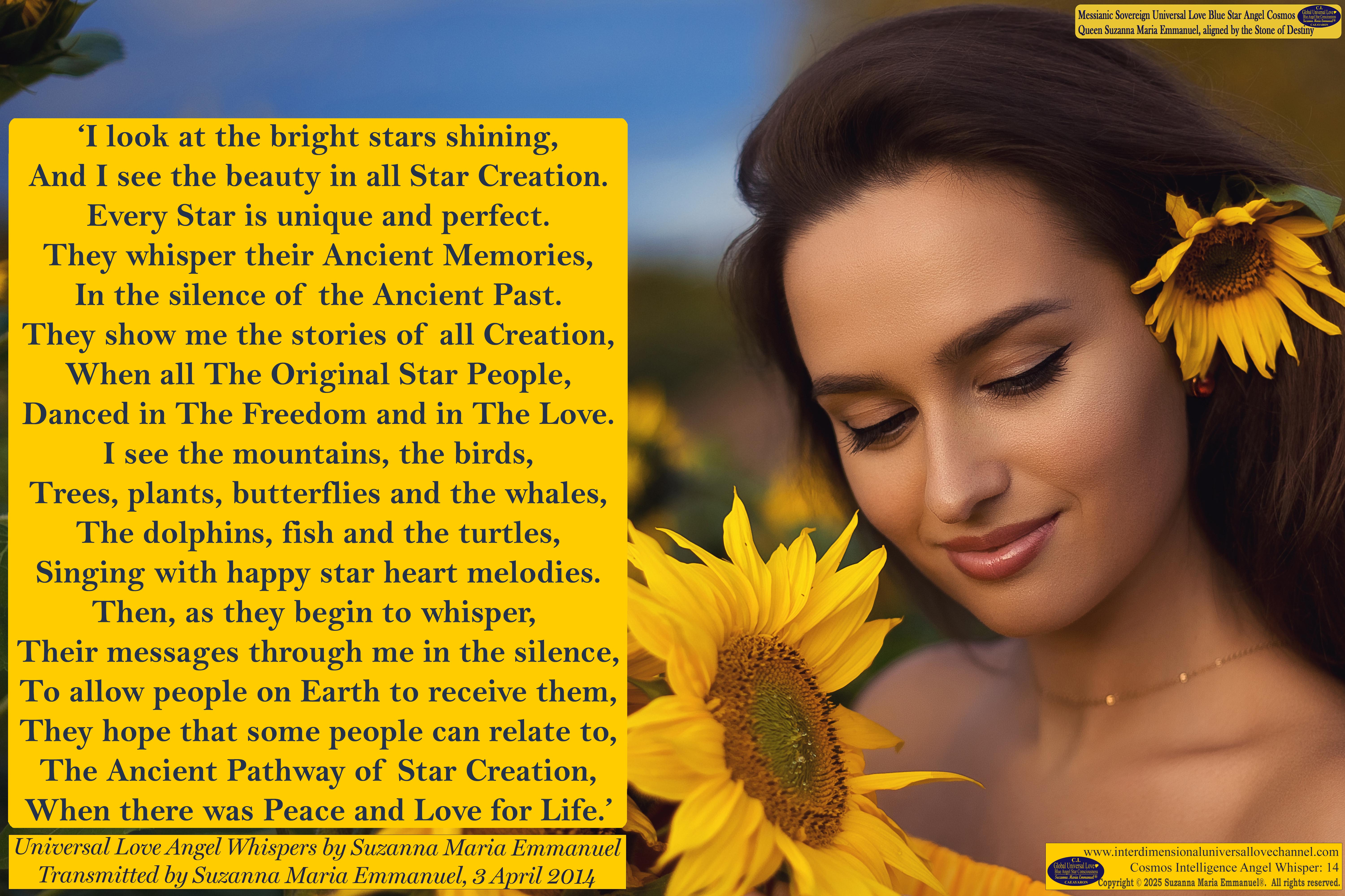 3 April 2014 - Universal Love Angel Whisper 14: Suzanna Maria Emmanuel, The Original Sovereign Channel, is the Original Coder of Life from The Eternal Star Realms.