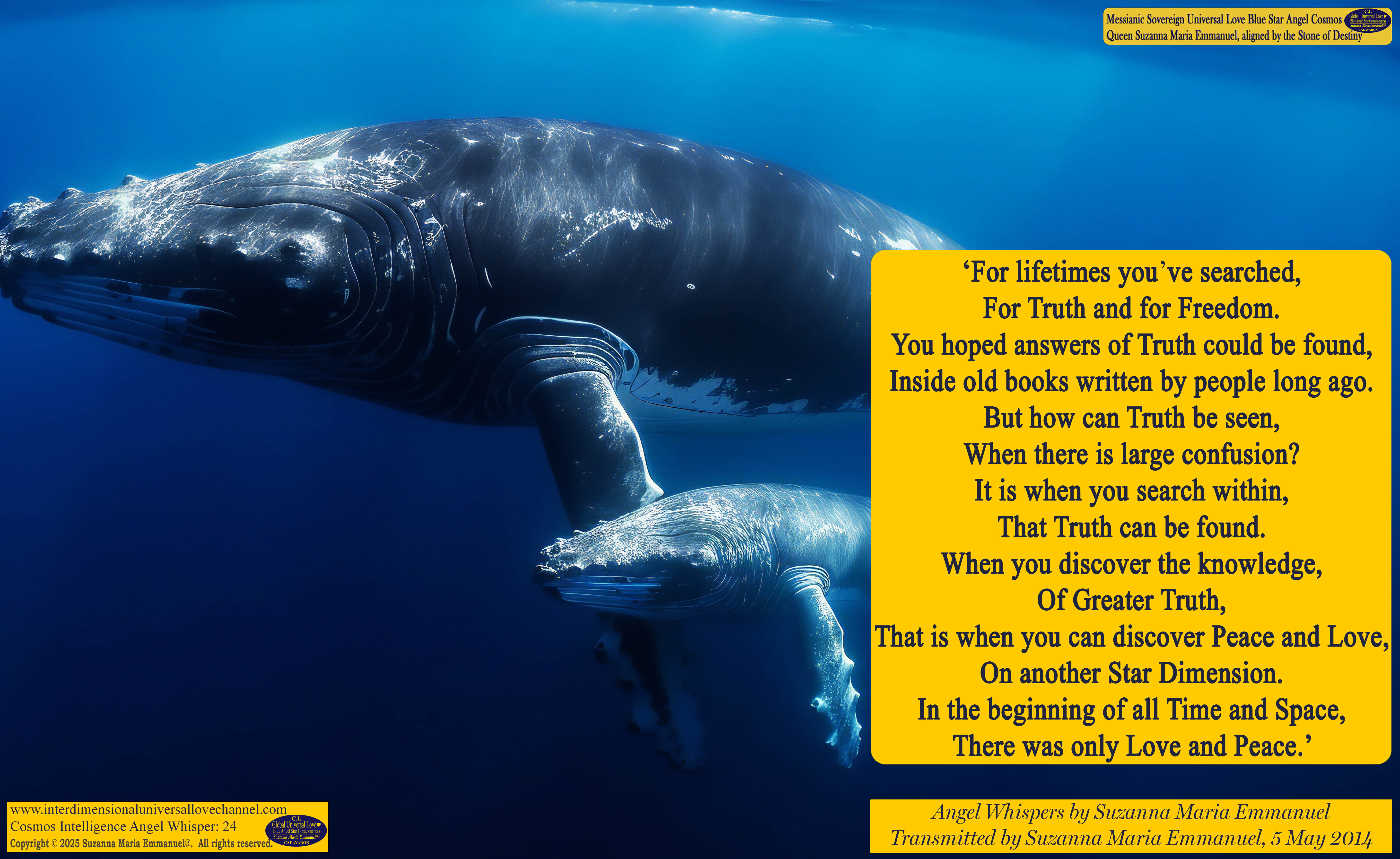 5 May 2014 - Angel Whisper 24: Suzanna Maria Emmanuel, The Original Sovereign Channel, is the Original Coder of Life from The Eternal Star Realms.