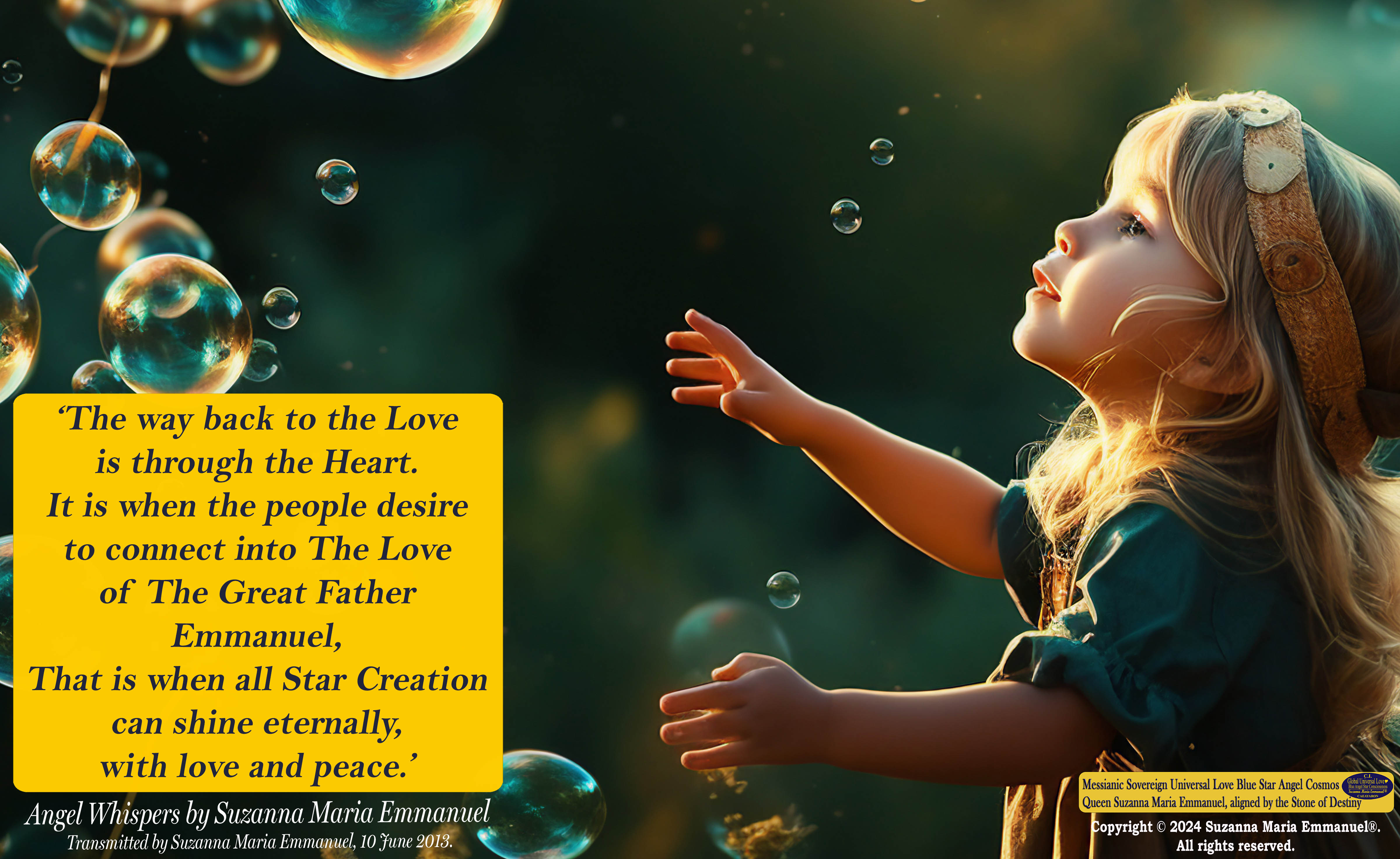 Suzanna Maria Emmanuel is The Original Designated Sovereign Universal Love Channel. In the year 2014, Sovereign Lord Emmanuel and Caeayaron told her that the future pathway of humanity on earth could only exist in the future with her Sovereign Universal Love Transmissions. All Suzanna Maria Emmanuel's Universal Love Star Consciousness Transmissions carry a DNA Code for life to continue to exist on earth. She was told by her Sovereign Masters to always stay in full alignment to The Divine Universal Love Golden Sun Consciousness of Sovereign Lord Emmanuel.