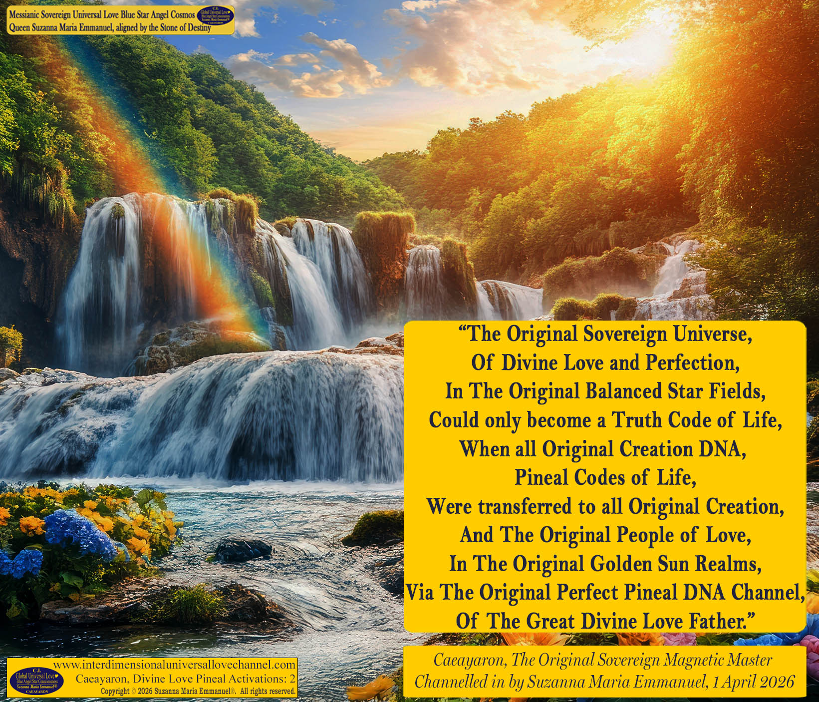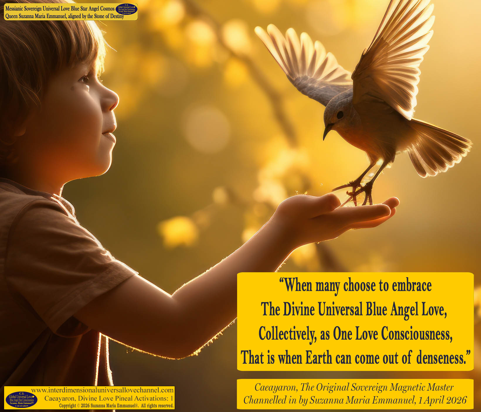 Caeayaron and The Original Sovereign Pineal DNA Angel Activation Channel, Cosmos Queen Laeayaraesea, The Original Sovereign Angel Channel of The Original Great Divine Universal Love Consciousness and Golden Sun Father, EMMANUEL, Page 1