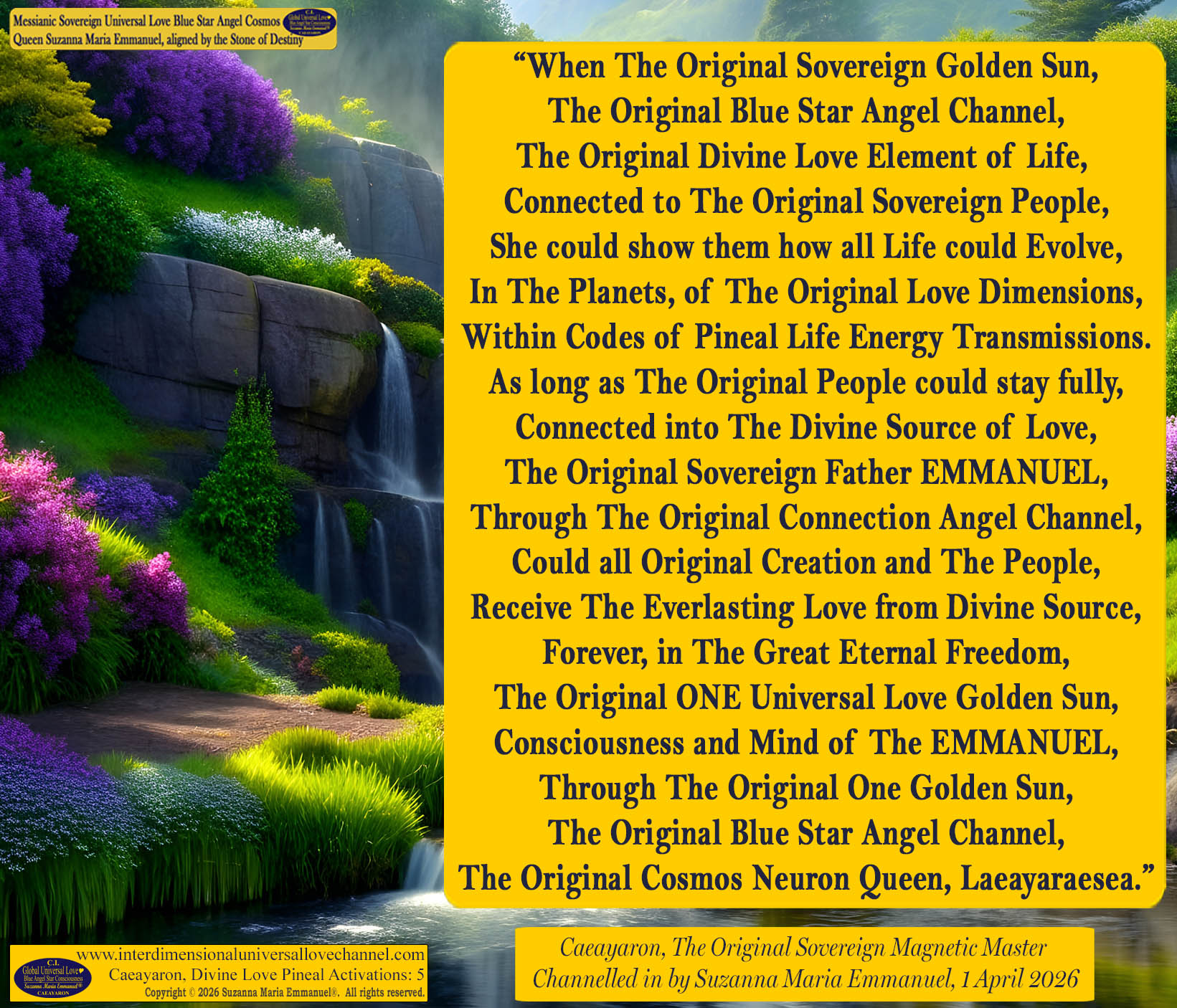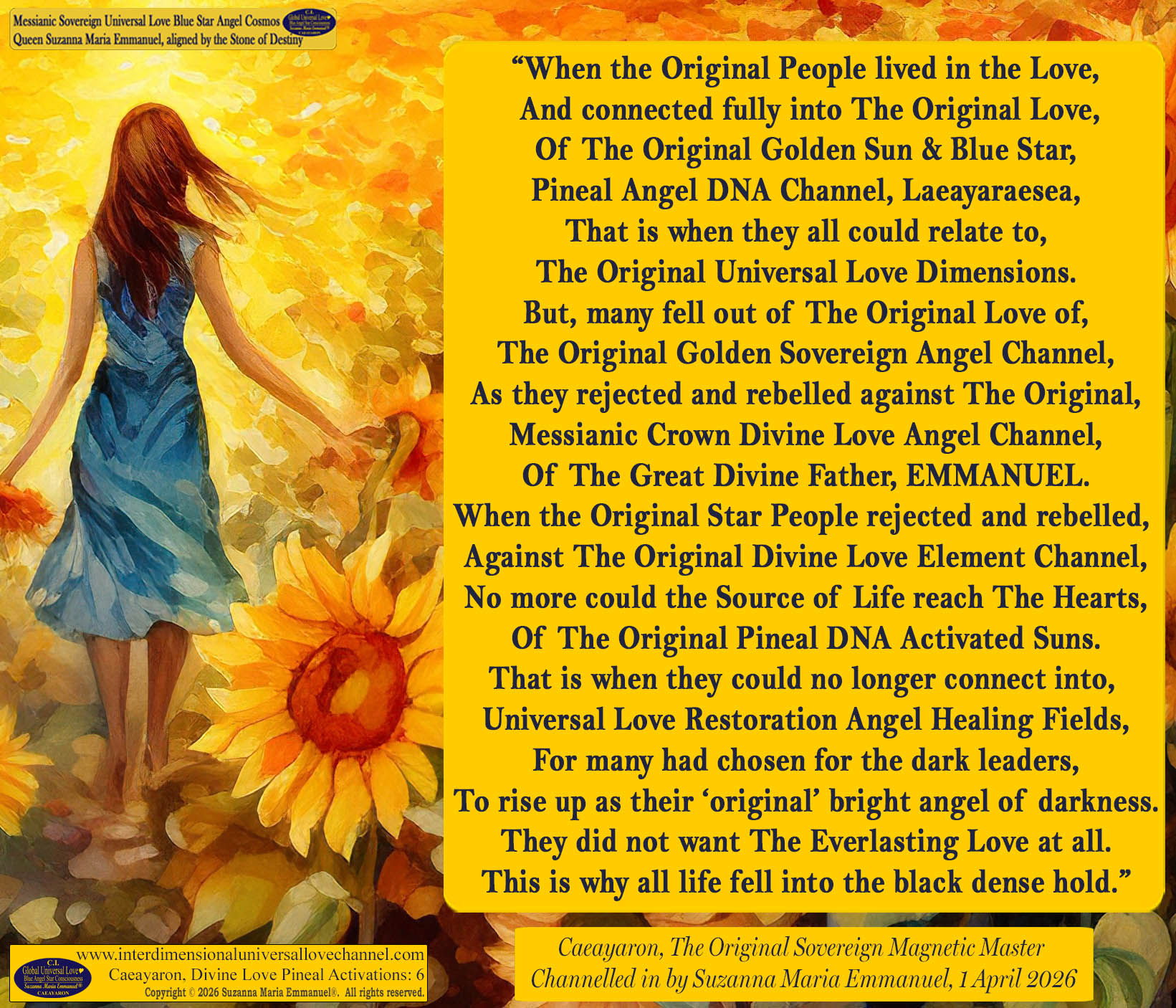 Caeayaron and The Original Sovereign Pineal DNA Angel Activation Channel, Cosmos Queen Laeayaraesea, The Original Sovereign Angel Channel of The Original Great Divine Universal Love Consciousness and Golden Sun Father, EMMANUEL, Page 3