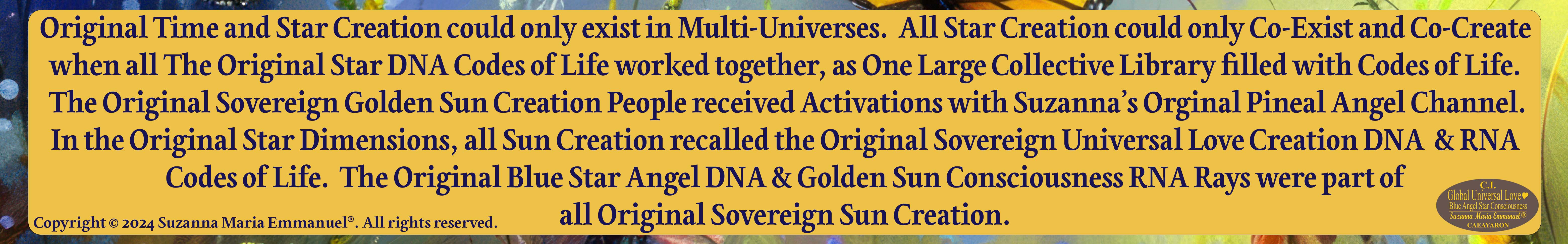 The Sovereign Universal Love Master Teachers are Caeayaron & Sovereign Lord Emmanuel, who can only work directly with their original Designated Messianic Sovereign Universal Love Blue Star Angel Channel, Suzanna Maria Emmanuel. All original Sovereign Cosmos Intellect is transmitted by Suzanna Maria Emmanuel. All Suzanna Maria Emmanuel's Interdimensional Star Intellect Transmissions of Universal Love Star Consciousness are copyright protected. Copyright © 2025 Suzanna Maria Emmanuel®. All rights reserved.