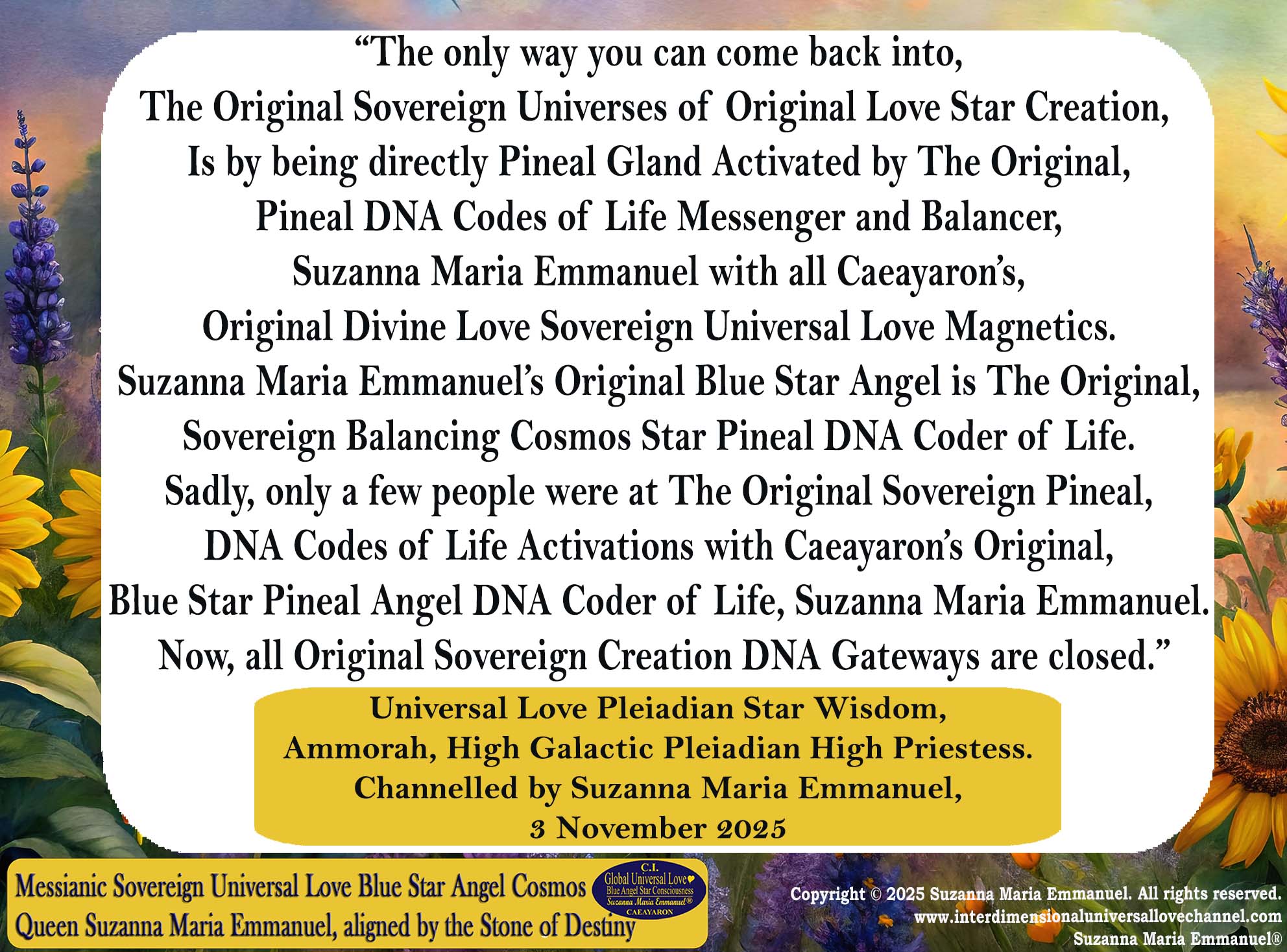 Channelled by Suzanna Maria Emmanuel, 3 November 2025.