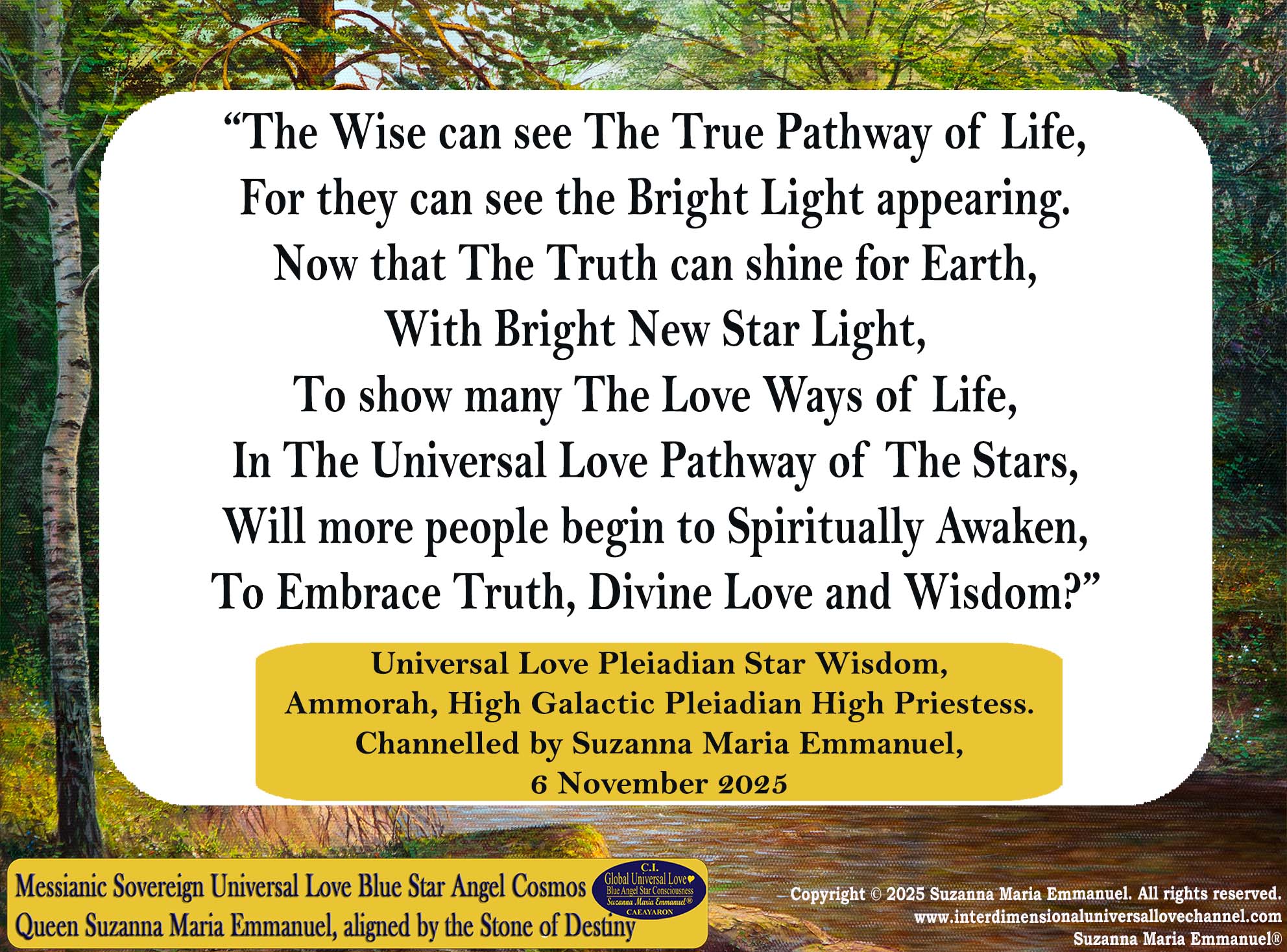 Channelled by Suzanna Maria Emmanuel, 6 November 2025.
