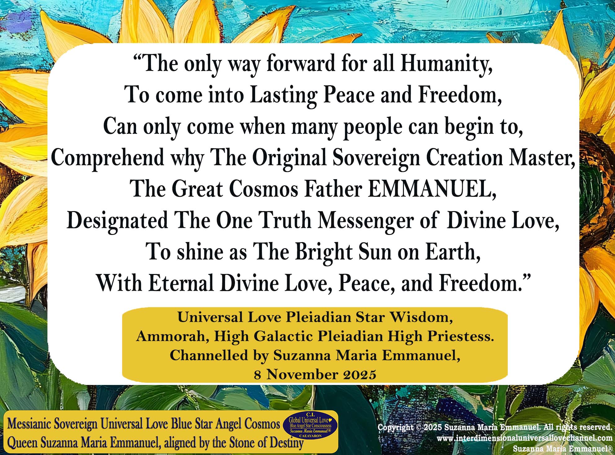 Channelled by Suzanna Maria Emmanuel, 8 November 2025.