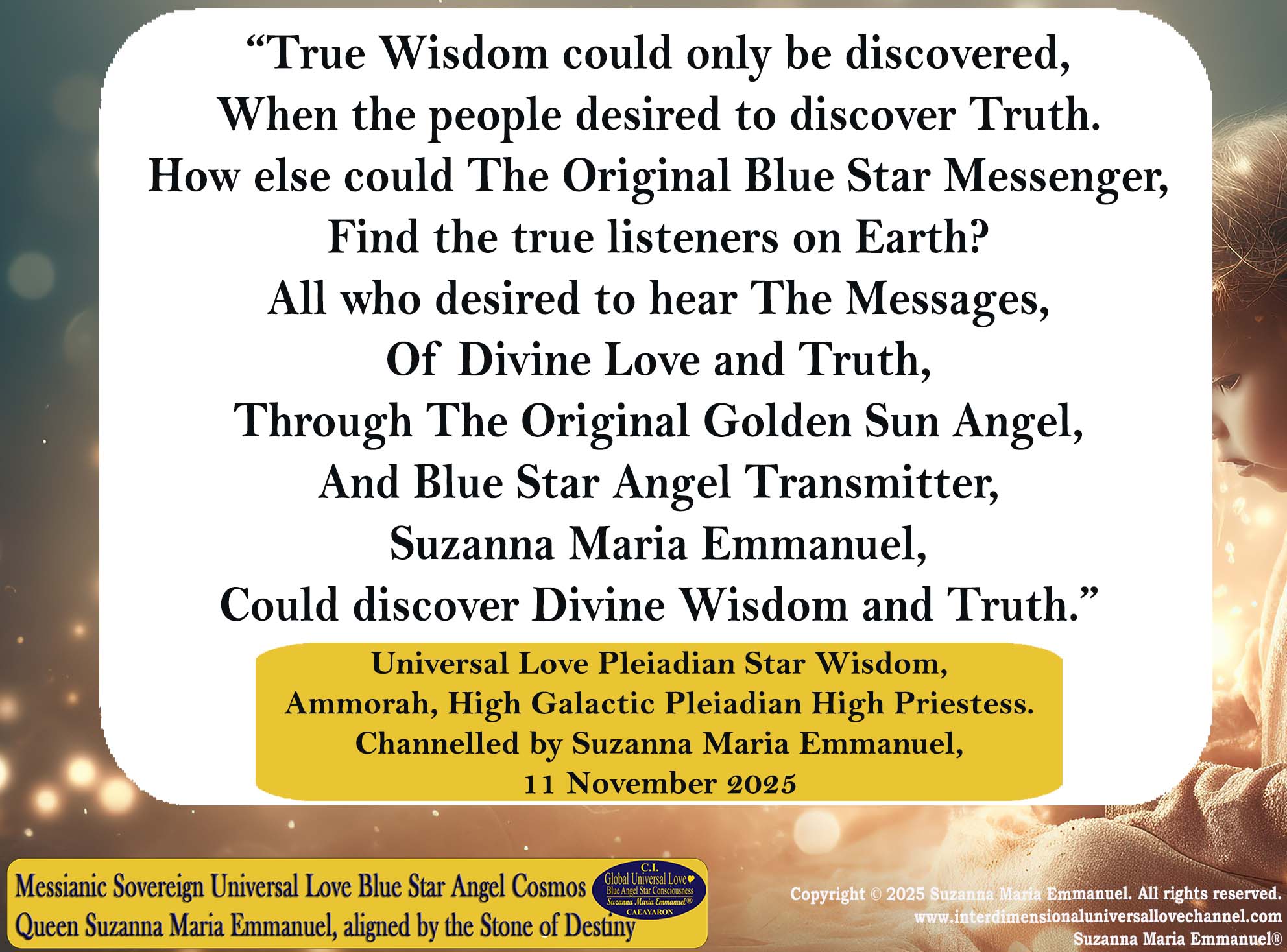 Channelled by Suzanna Maria Emmanuel, 11 November 2025.