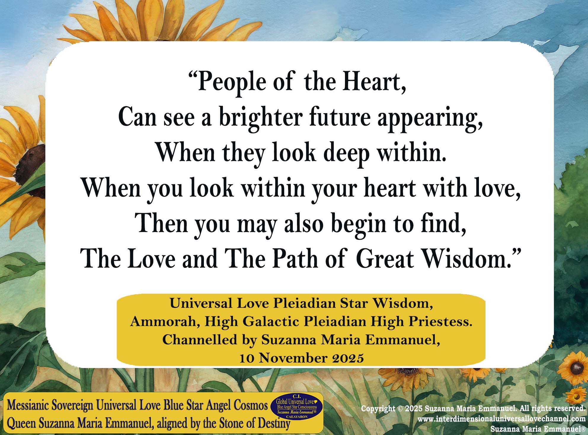 Channelled by Suzanna Maria Emmanuel, 10 November 2025.