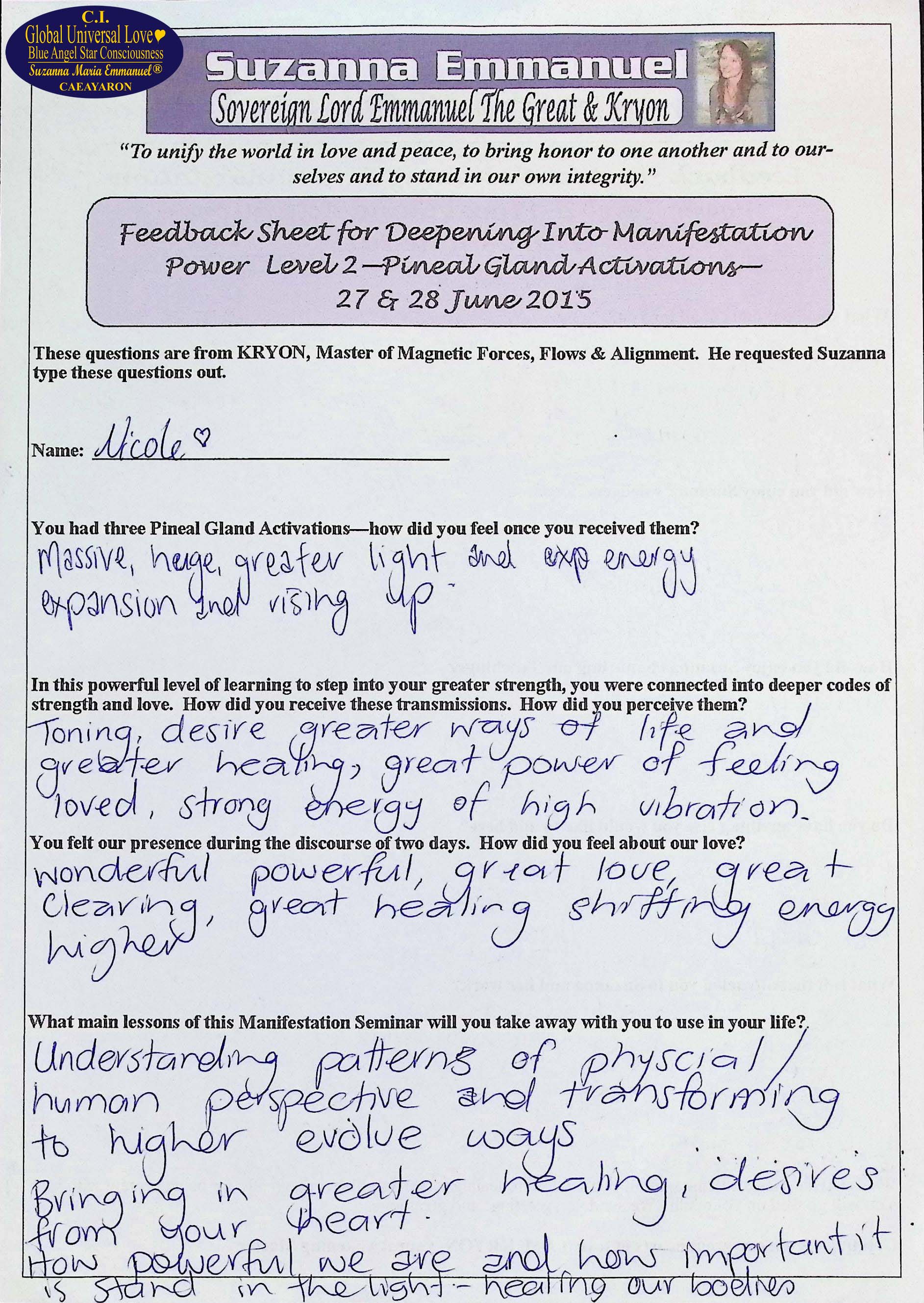 2. Testimony from Nicole: The Divine and Universal Love Pineal Gland DNA Activation Events 2: June 2015, Page 2