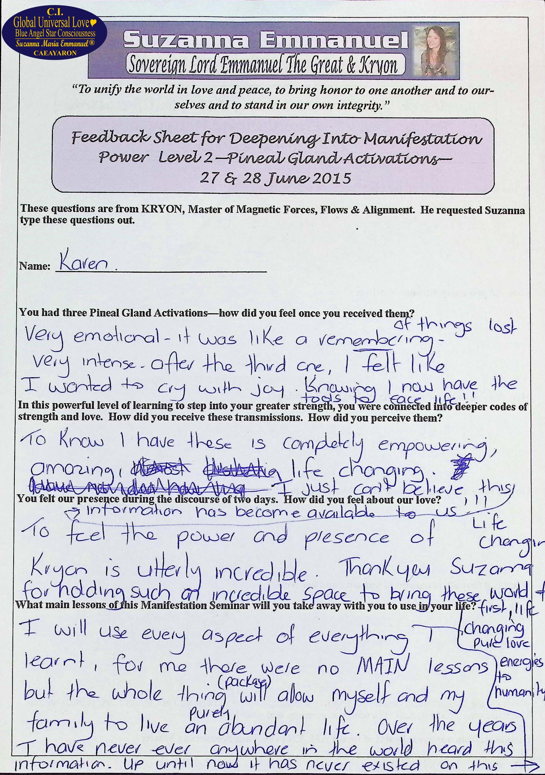 3. Testimony from Karen: The Divine and Universal Love Pineal Gland DNA Activation Events 2: June 2015, Page 2