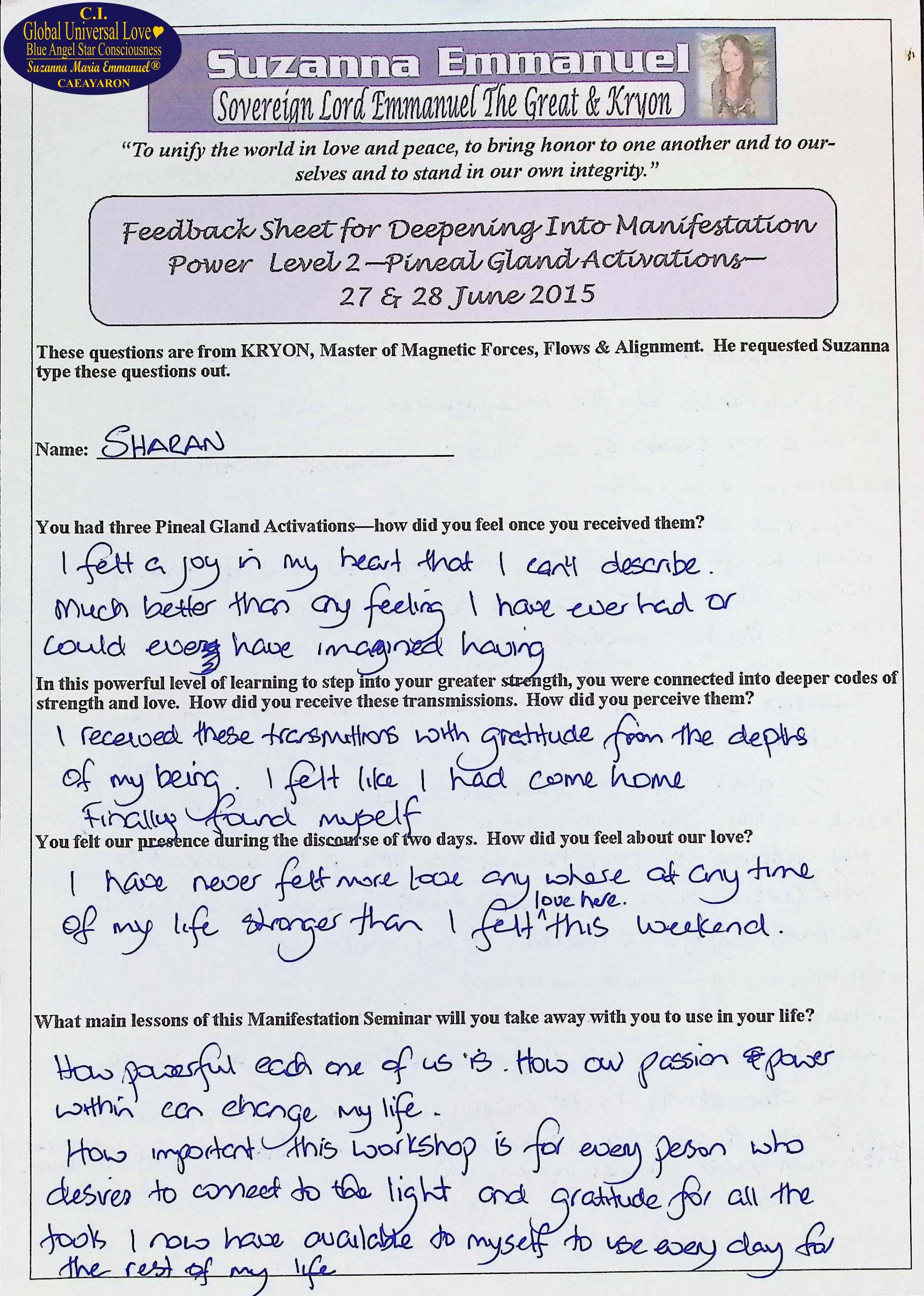 1. Testimony from Sharan: The Divine and Universal Love Pineal Gland DNA Activation Events: June 2015, Page 2