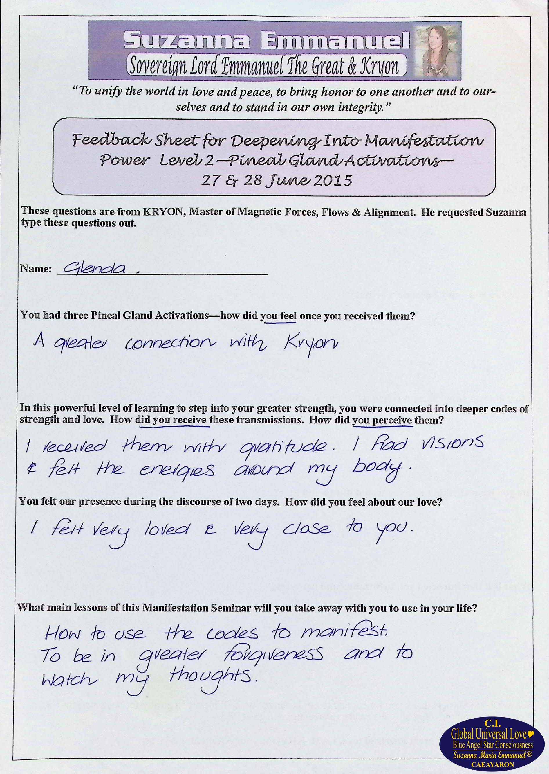 5. Testimony from Glenda: The Divine and Universal Love Pineal Gland DNA Activation Events 2: June 2015, Page 2