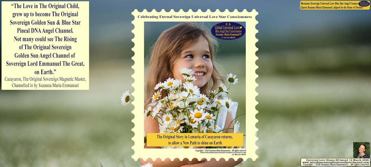 “The Original Sovereign Star Creation Dimensions could only exist in Eternal Peace and The Universal Love, when all The Original Sovereign Sun People could relate to The Original Interdimensional Universes in The Love. I, Caeayaron, The Original Sovereign Magnetic, Cosmos Intelligence Pineal Sound DNA Creation Master, would like to say the following to all who would like to relate to The Original Divine Love and Purpose: “When all Original Life in The Original Creation Realms, could exist in the Original Love and Harmony, all Original Magnetic Life Fields in Eternal Love flowed through The Original Sovereign Universal Love Golden Sun & Blue Star Angel Channel, Cosmos Queen Laeayaraesea. That is when all Original Life resonated with The Original Creation Purpose in Life. But, when a large war came into Creation, life could not harmonize in the Original Heartbeat of Interdimensional Creation. This is why I, Caeayaron, designated The Original Universal Love Golden Sun & Blue Star Archangel Channel, to help and assist humanity on Earth, so that some might want to Awaken to the Original Purpose of The Original Sovereign and Galactic Star Activations of The Original Golden Sun and Blue Star Consciousness Dimensions with The Original Designated Channel, who on your Earth is: Suzanna Maria Emmanuel.”” 💙