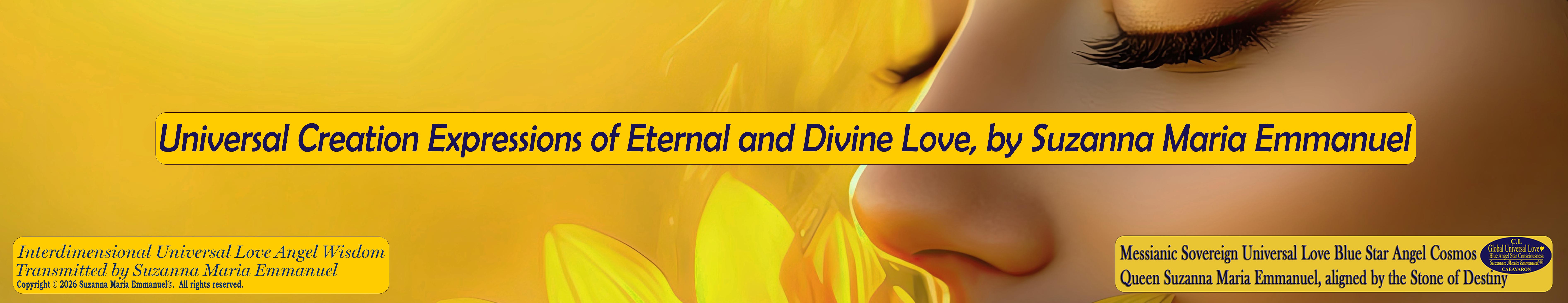 All Suzanna Maria Emmanuel's Original Star Intellect Transmissions of Universal Love Star Consciousness are trademarked and they all are copyright protected with a Professional Legal Disclaimer & Indemnity, Copyright Protection, Terms & Conditions and Trademark Clause. Suzanna Maria Emmanuel®