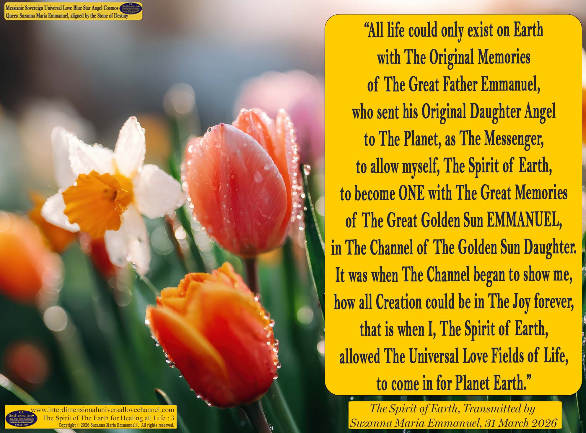 Suzanna Maria Emmanuel®. About Suzanna Maria Emmanuel: She is The Original Designated Sovereign Master & Star Universal Love Angel Transmitter and Messenger. She is The Original Earth Energy Healing Flow Balancer with her Original Sovereign Golden Sun Master Emmanuel Pineal Flow of Energy, to allow the flows of Caeayaron and Sovereign Lord Emmanuel to support and assist Humanity and all life on Earth, today, potentially. All Suzanna Maria Emmanuel's Original Star Intellect Transmissions of Universal Love Star Consciousness are trademarked and they all are copyright protected with a Professional Legal Disclaimer & Indemnity, Copyright Protection, Terms & Conditions and Trademark Clause. Suzanna Maria Emmanuel® Copyright © 2026 Suzanna Maria Emmanuel Ltd. All rights reserved. Terms & Conditions apply at all times.