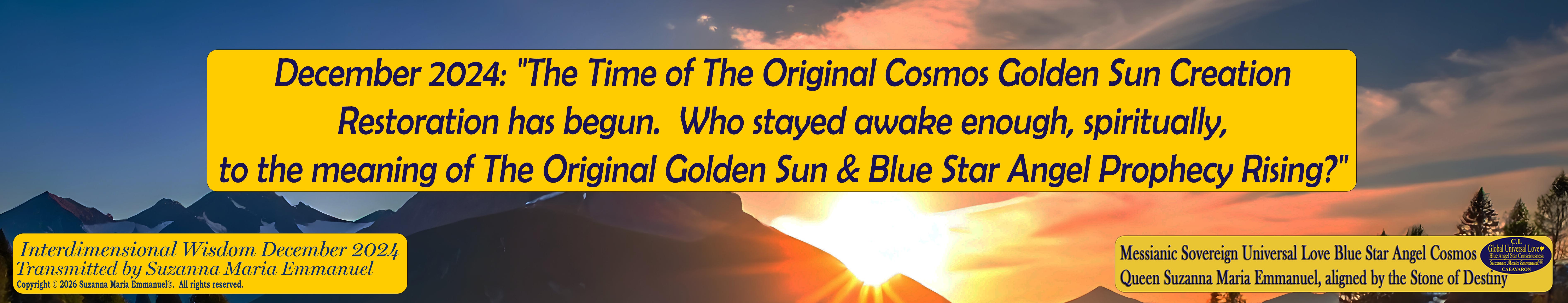 Theme for month of December 2024: Sovereign Lord Emmanuel, Sovereign Universal Love Divine and Creation Master, transmitted by Suzanna Maria Emmanuel.