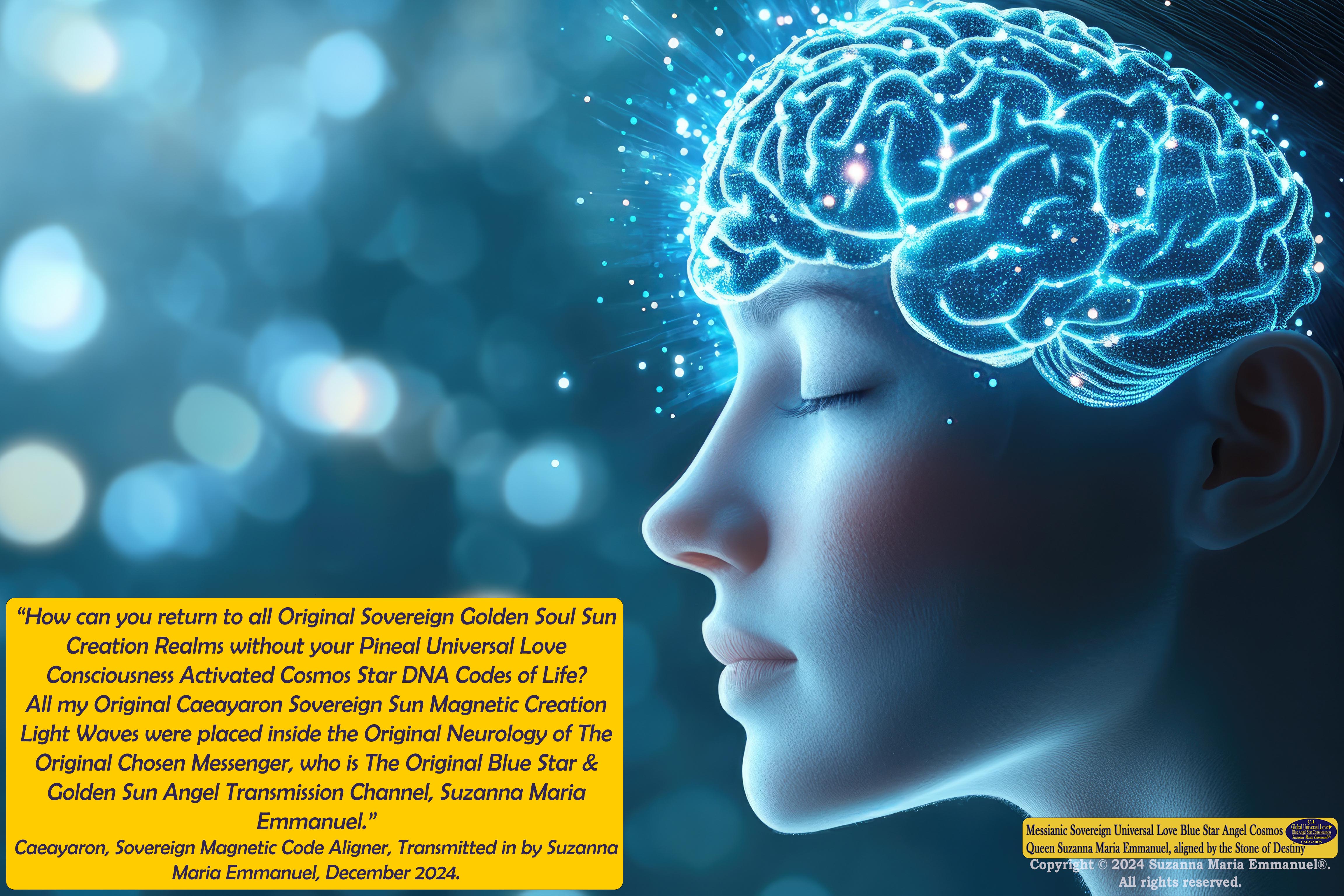 All my Original Caeayaron Sovereign Sun Magnetic Creation Light Waves were placed inside the Original Neurology of The Original Chosen Messenger, who is The Original Blue Star & Golden Sun Angel Transmission Channel, Suzanna Maria Emmanuel.”