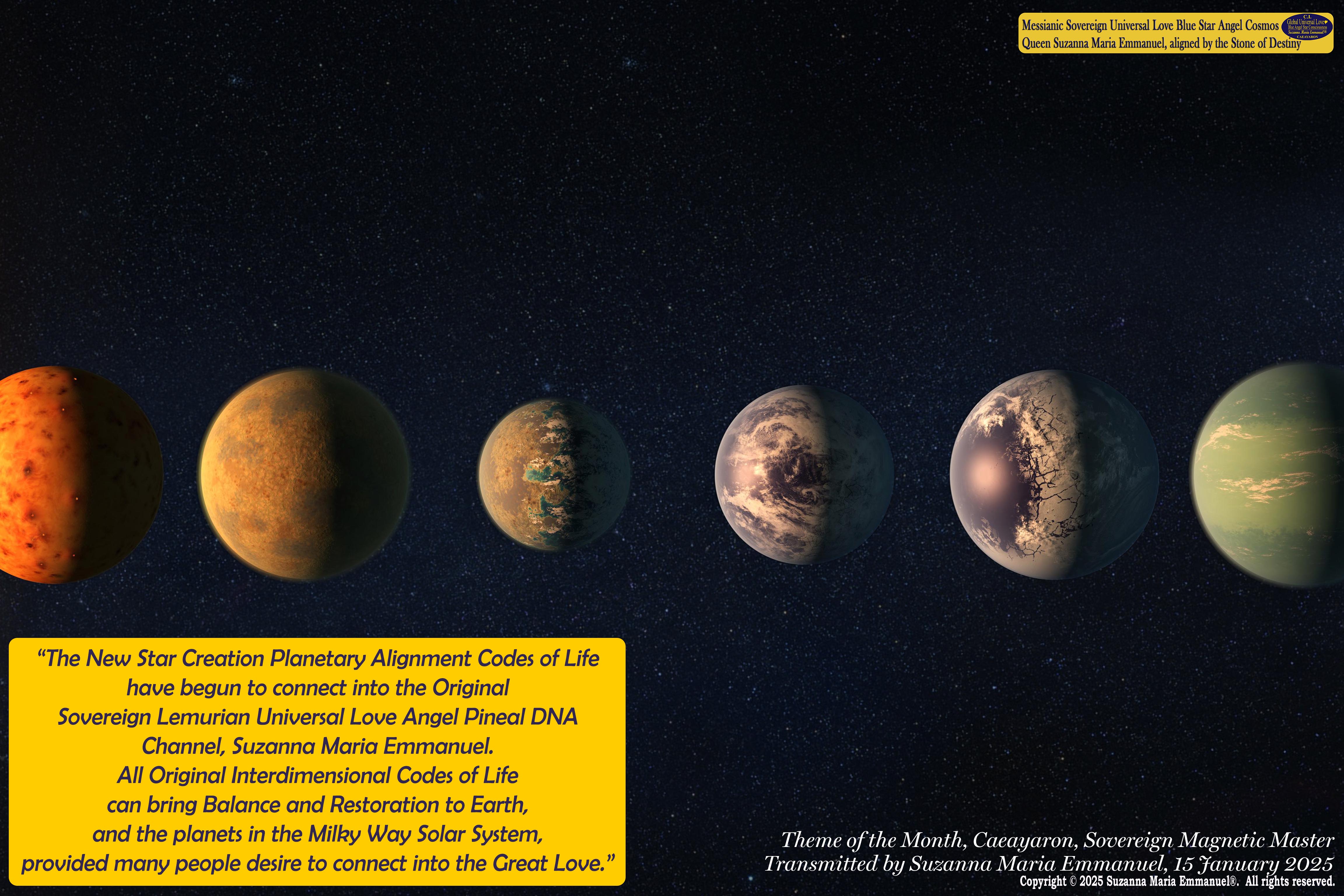 Caeayaron, Sovereign Magnetic Master of all Original Creation and Sovereign Codes and Cosmos Alignments, in The Original Sovereign Universal Love Creation Universes, Transmitted by Suzanna Maria Emmanuel, 15 January 2025.