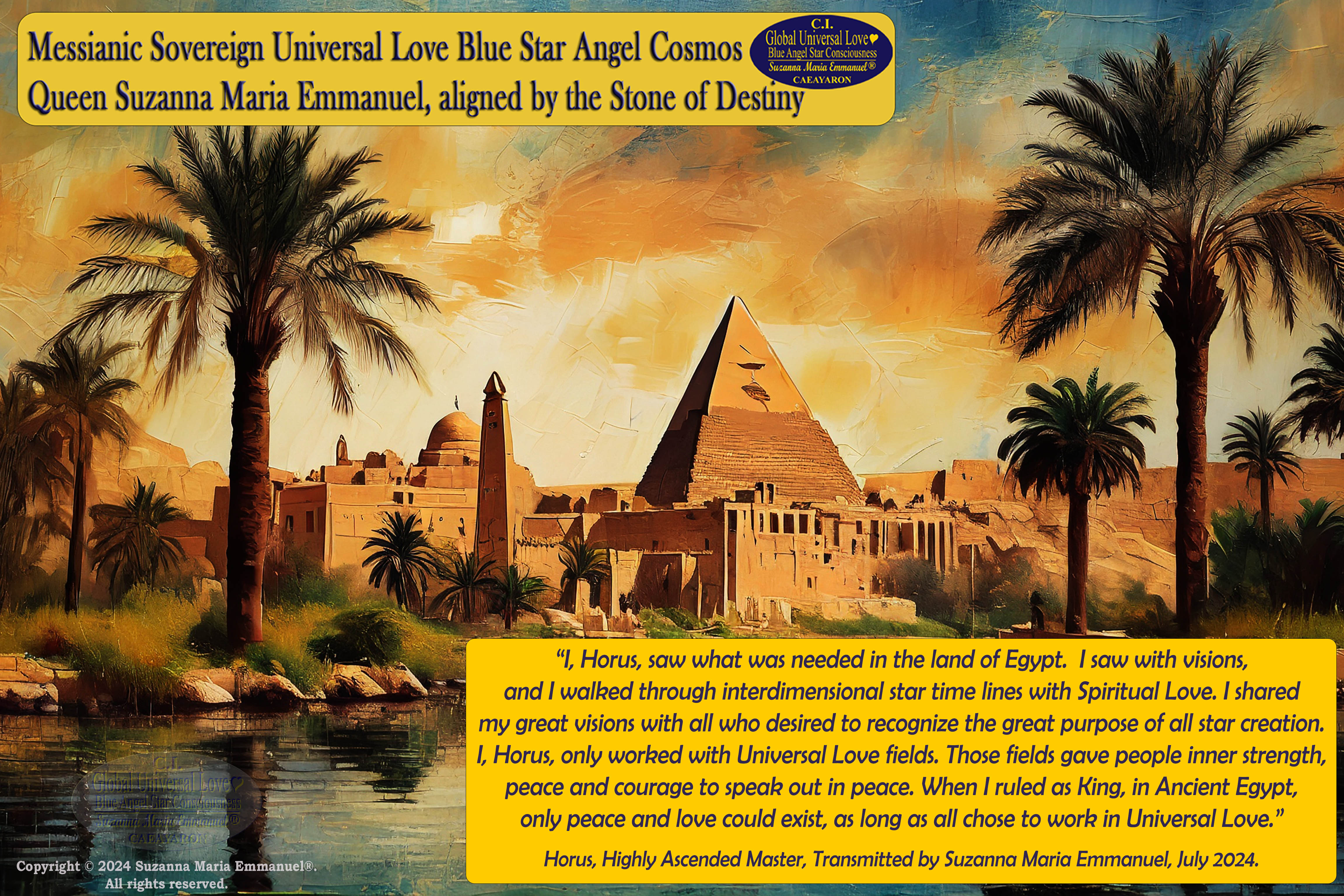 Horus, Highly Ascended Master of Ancient Egypt, Transmitted by Suzanna Maria Emmanuel, July 2024.
