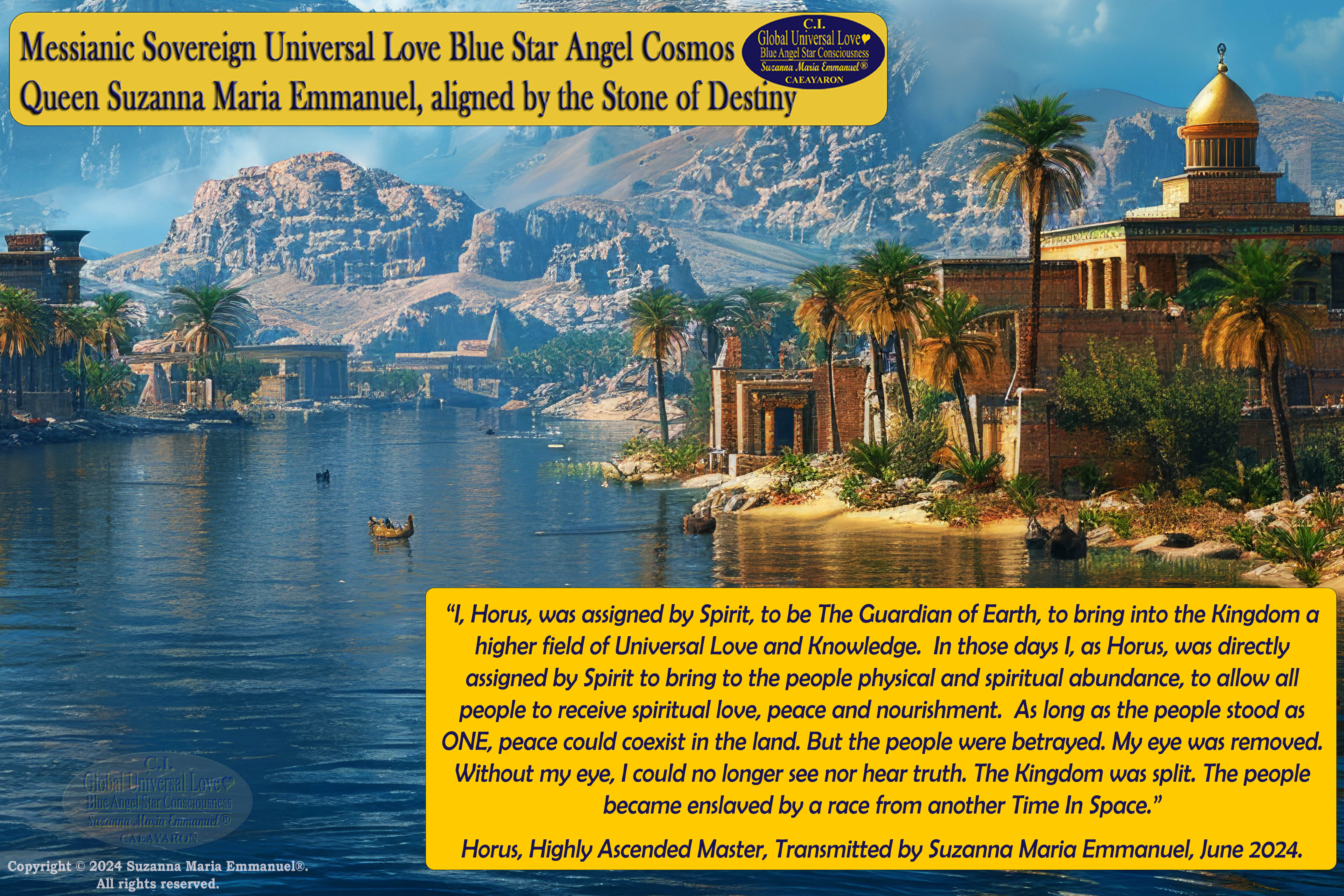 Horus, Highly Ascended Master of Ancient Egypt, Transmitted by Suzanna Maria Emmanuel, June 2024