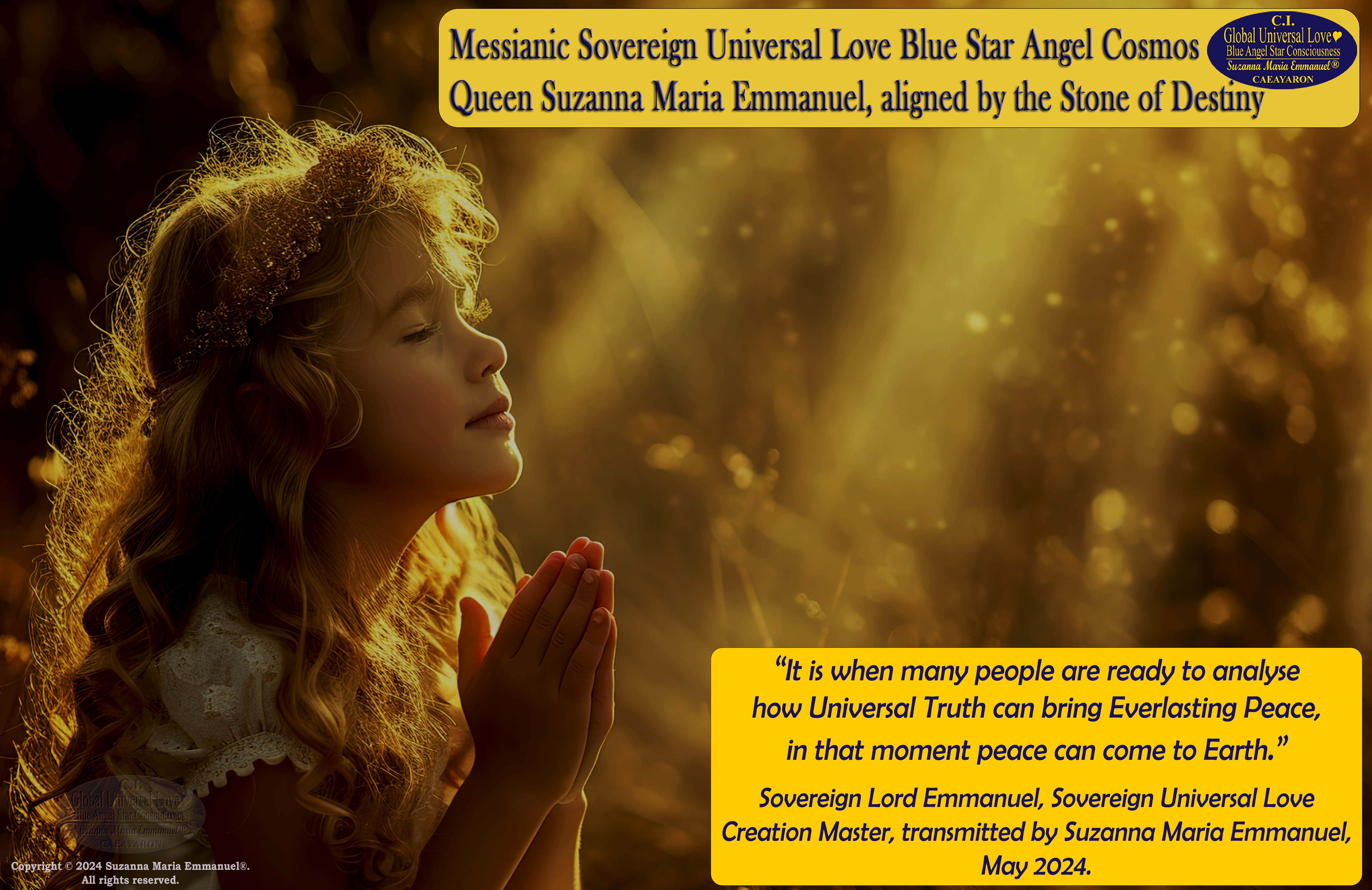 Theme for month of May 2024: Sovereign Lord Emmanuel, Sovereign Universal Love Divine and Creation Master, transmitted by Suzanna Maria Emmanuel.