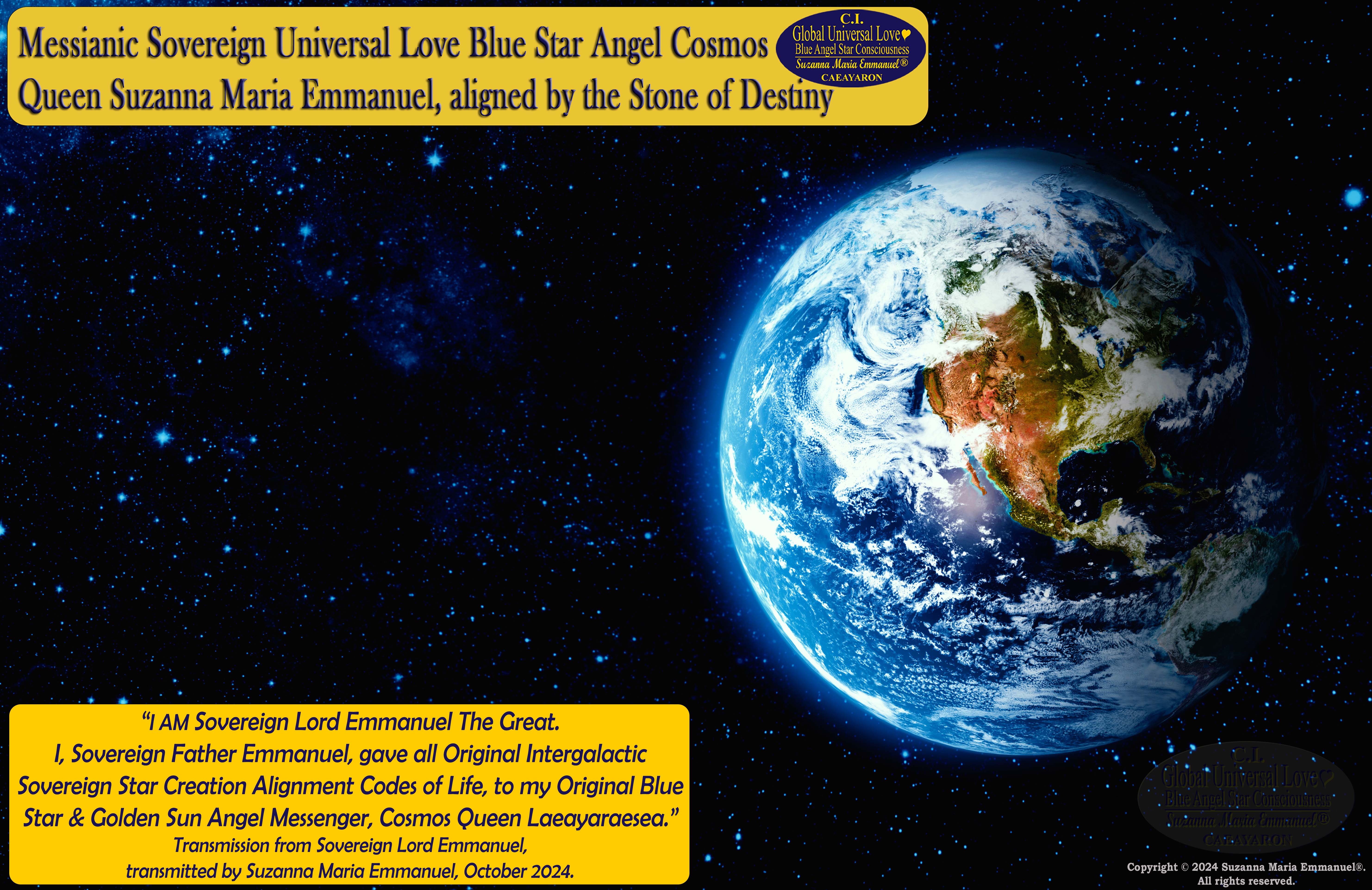 Theme for month of October 2024: Sovereign Lord Emmanuel, Sovereign Universal Love Divine and Creation Master, transmitted by Suzanna Maria Emmanuel.