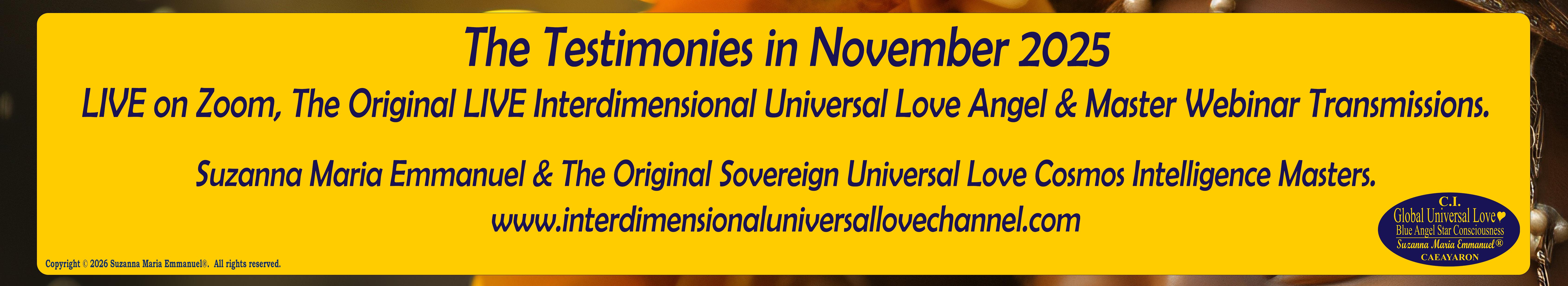All Sovereign Universal Love Transmissions were transmitted LIVE by Suzanna Maria Emmanuel, during the Interdimensional Universal Love Angel & Star Webinar Transmission.