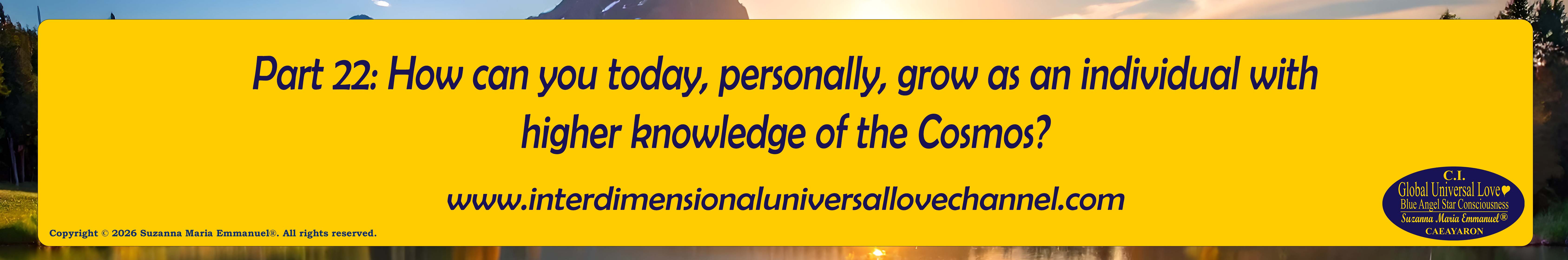 All Suzanna Maria Emmanuel's Interdimensional Star Intellect Transmissions of Universal Love Star Consciousness carry a professional and Legal Disclaimer & Indemnity, Copyright Protection and a Trademark Clause. Terms & Conditions of the Interdimensional Universal Love Angel and Star Webinar Transmission apply at all times.